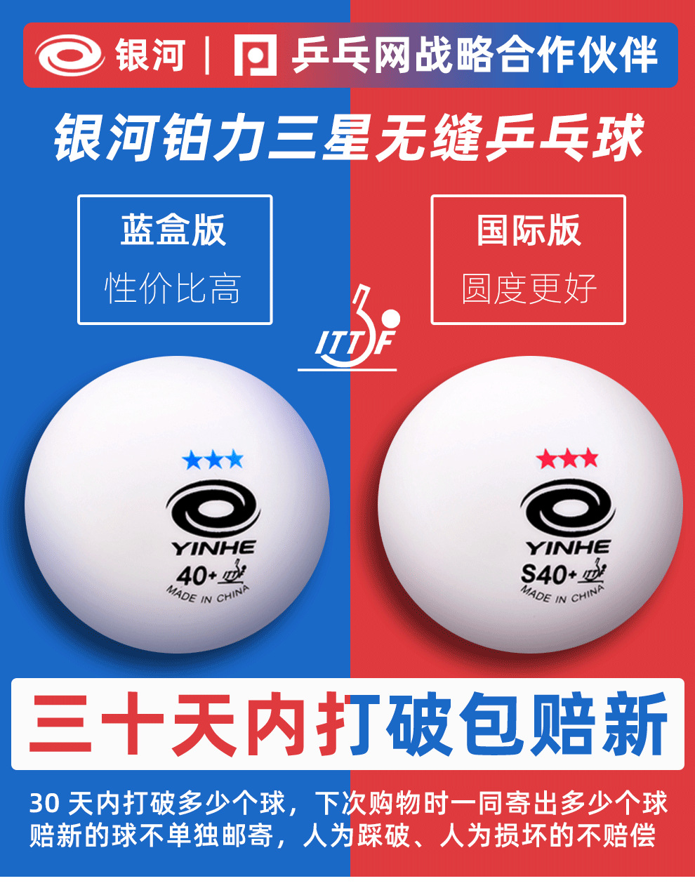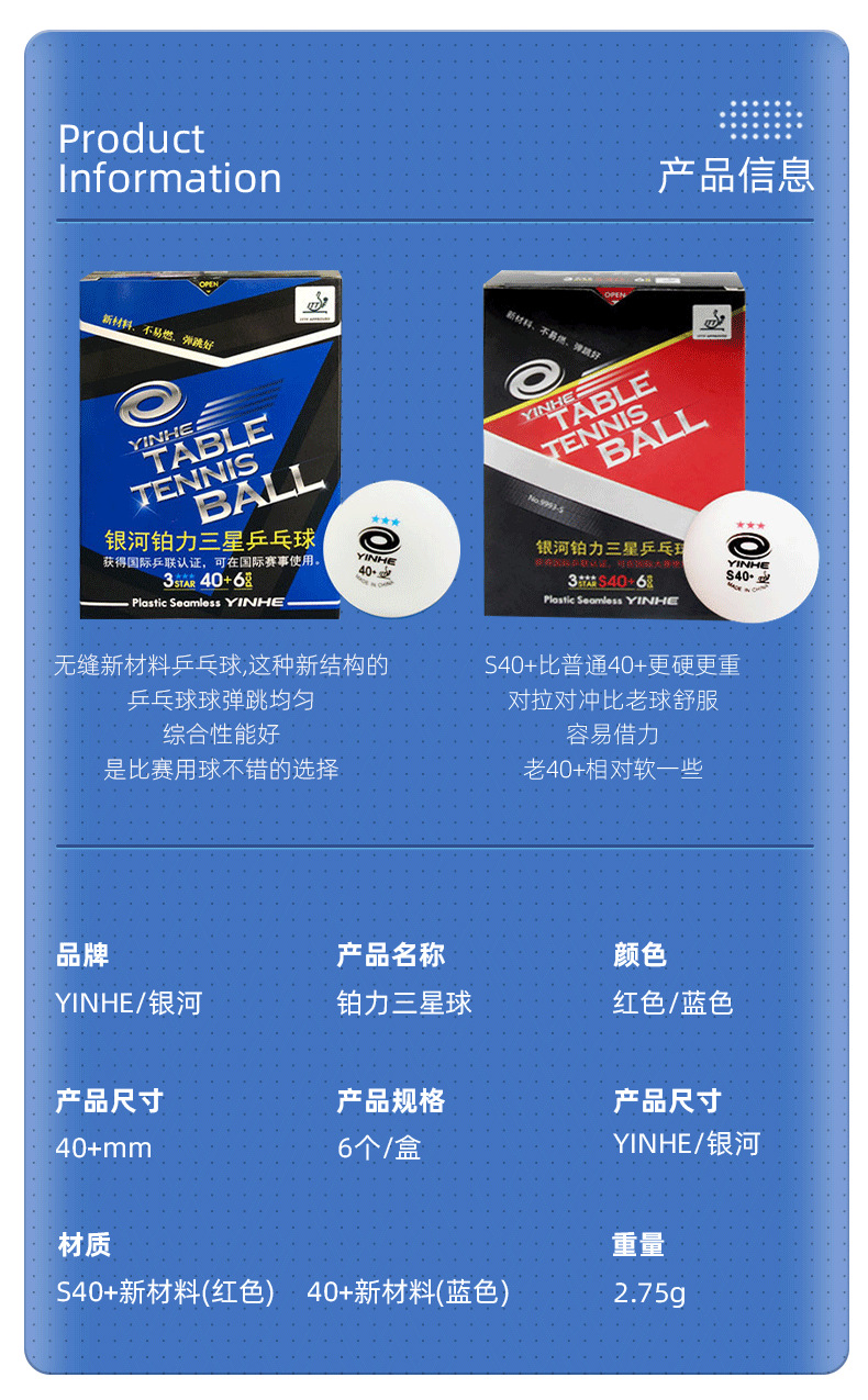 #银河新材料无缝三星乒乓球40+铂力3星球圆润高弹比赛用乒乓