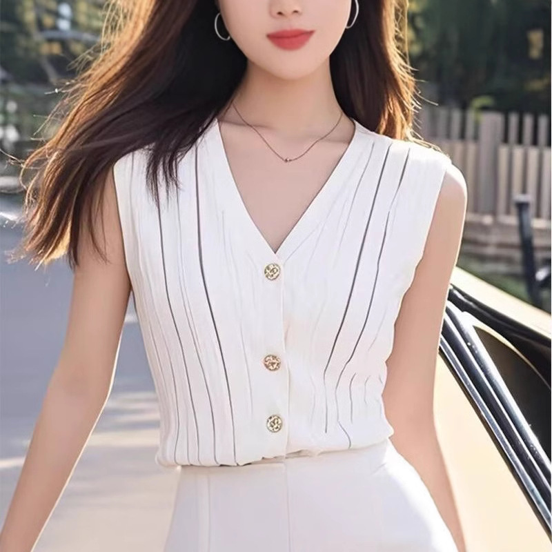 フレンチセクシーホットVネックノースリーブベスト春夏薄手ストライプスリムフィット万能ガールチューブトップレディースセーター