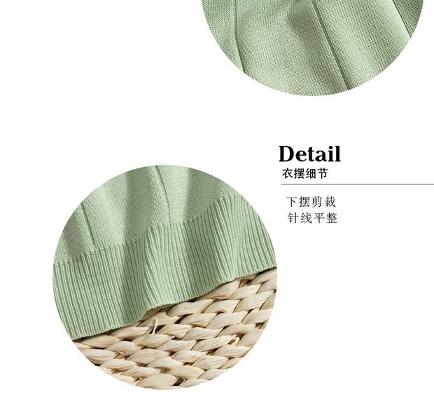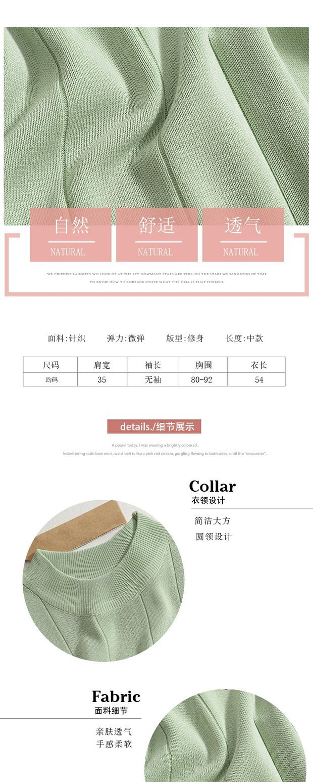 夏の服の新型の頭の丸首の袖なしのニットの氷糸のベストは韓国版の純色のニットのtシャツの上着を合わせます。