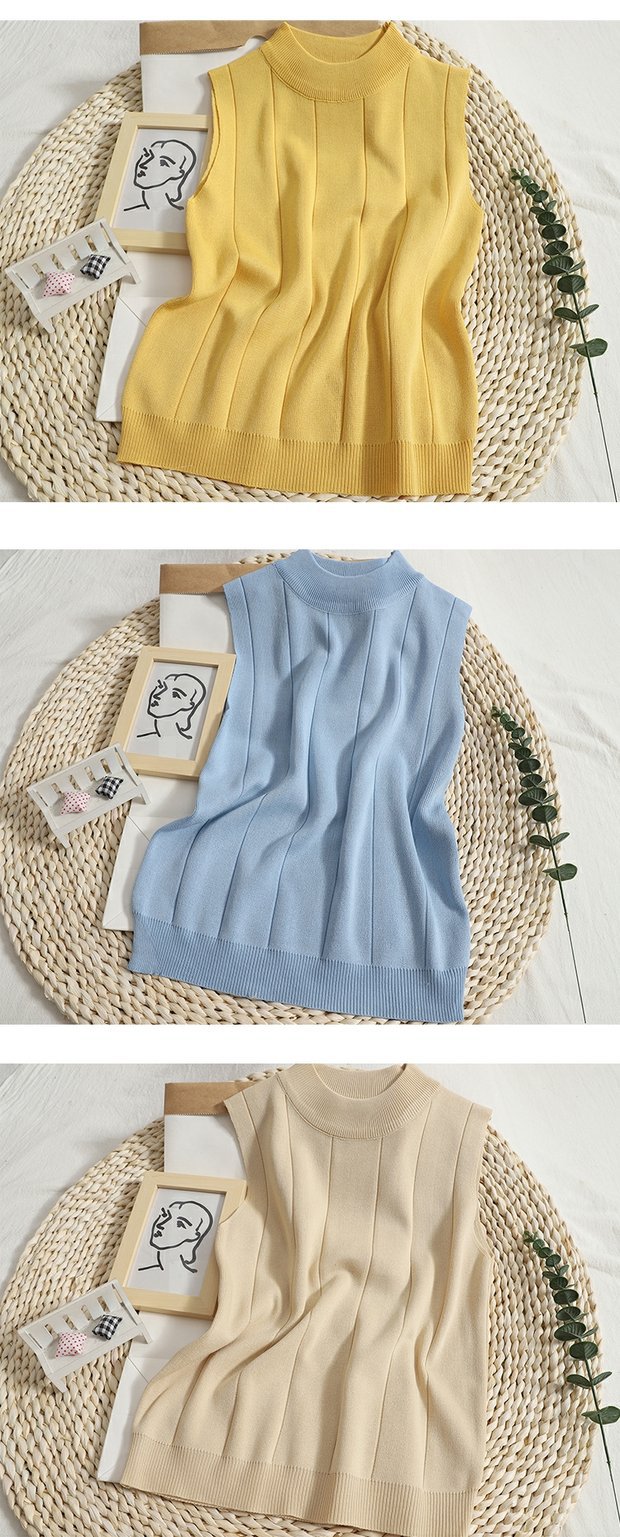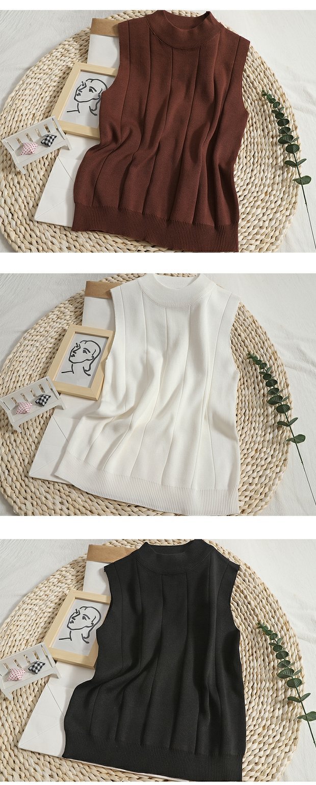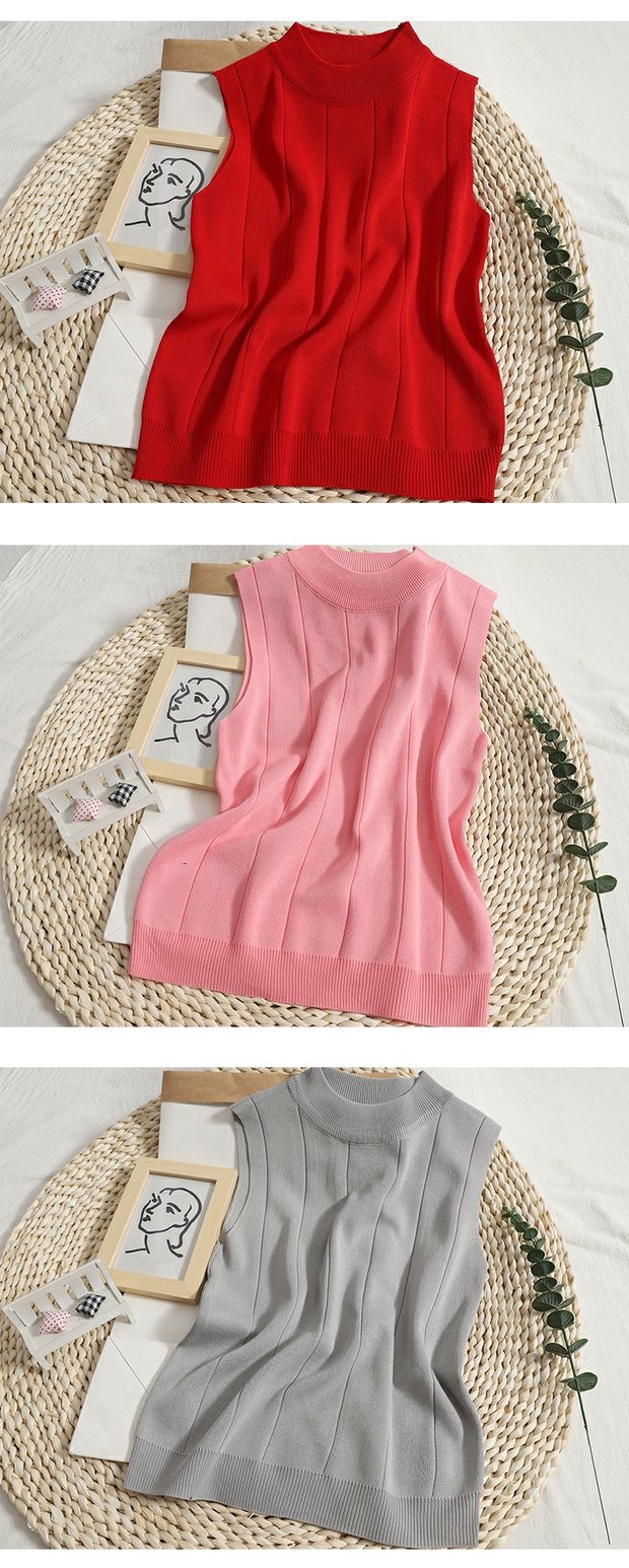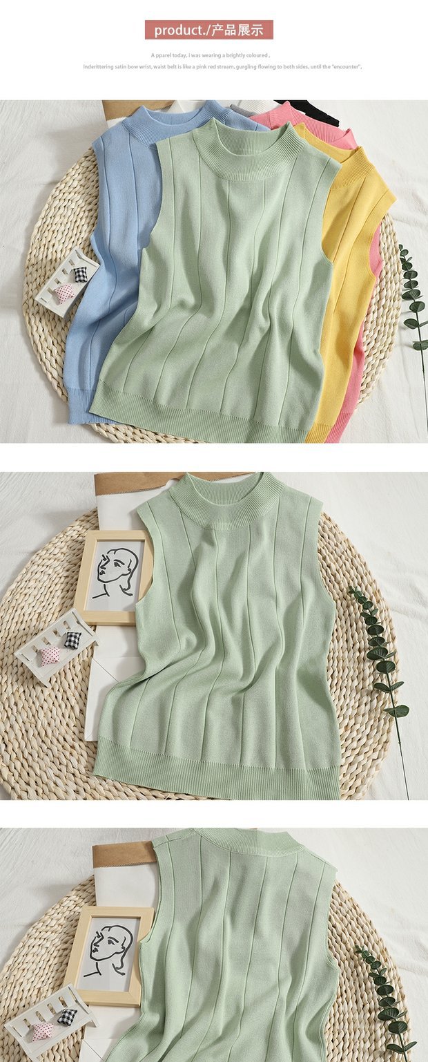 半高领无袖针织衫女外穿秋季新款修身薄款打底衫内搭背心短款上衣