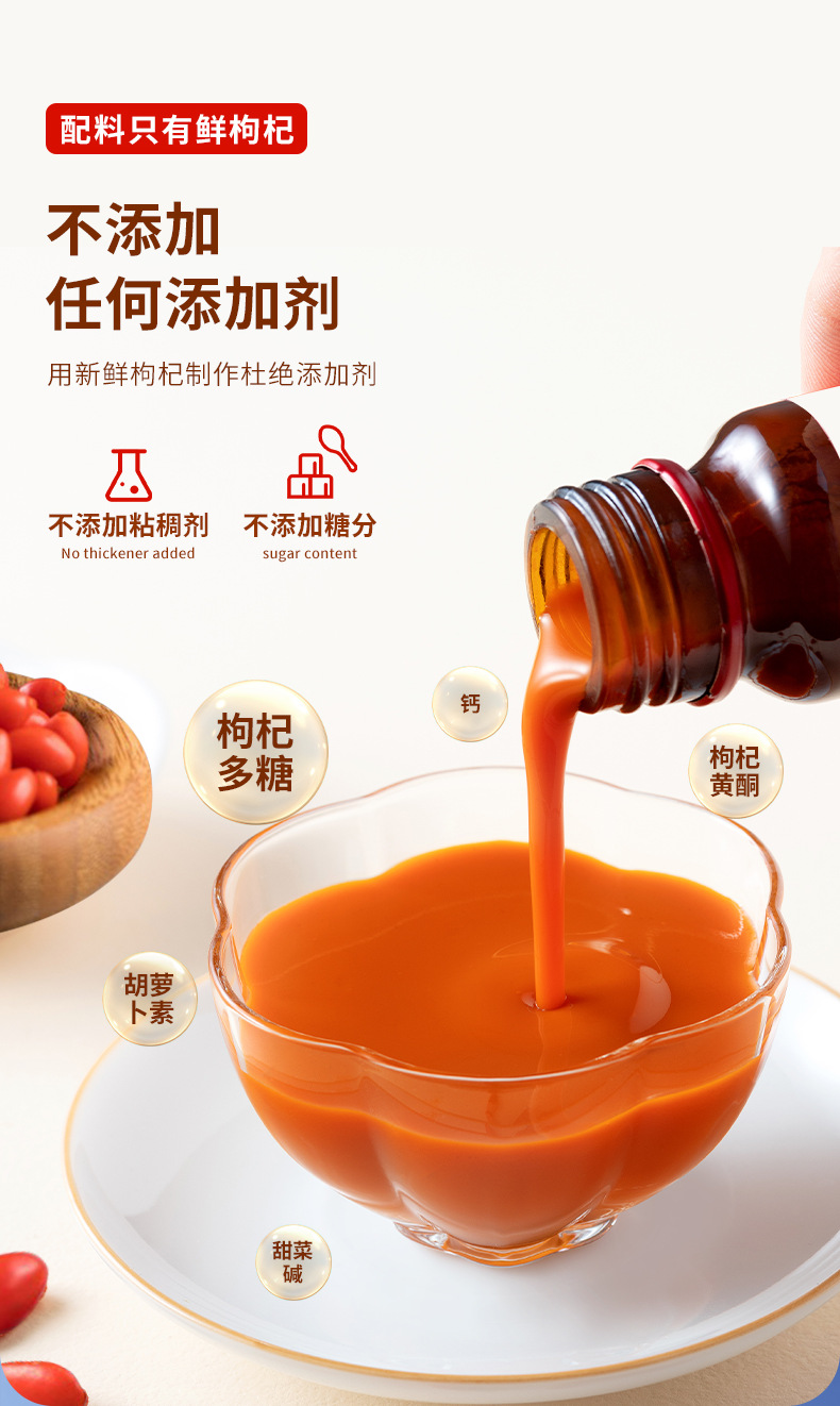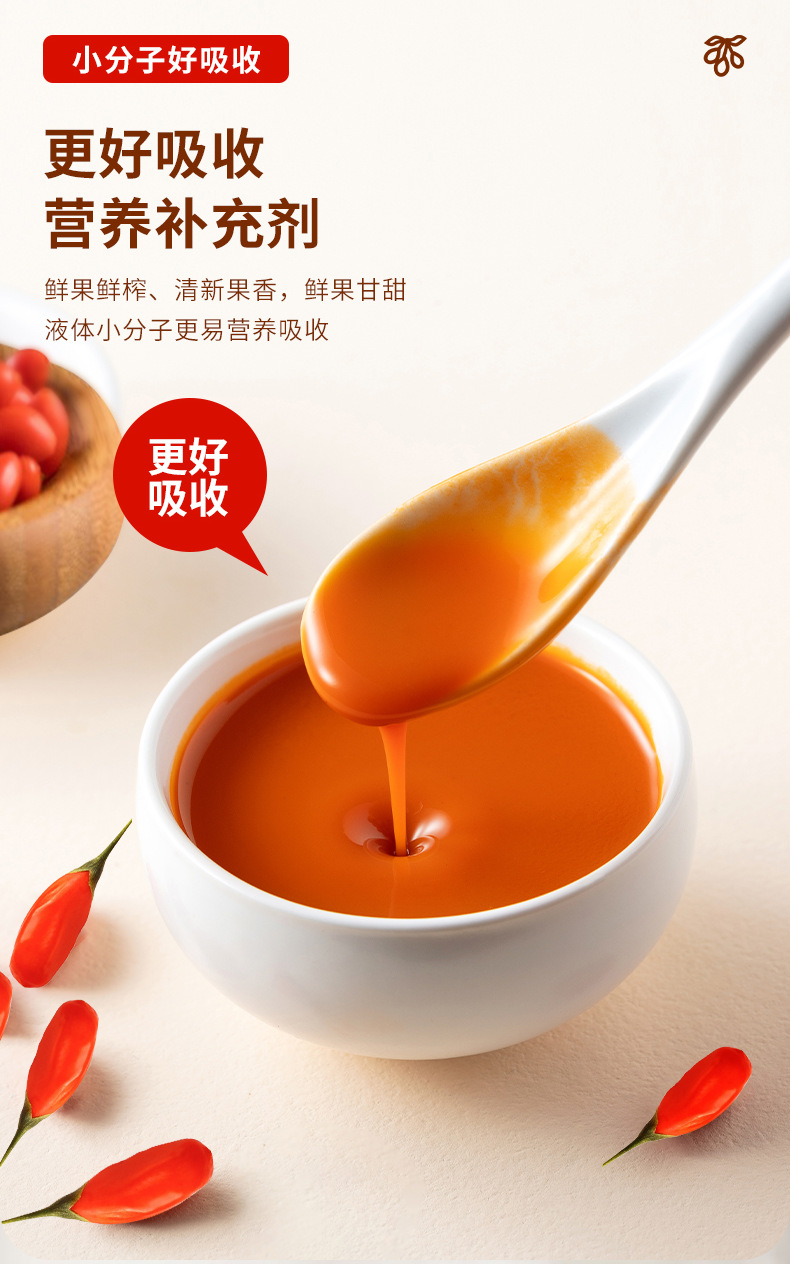 寧夏クコ原液、新疆シーバックソーン全果原液、黒クコ果汁濃縮植物飲料原液、小瓶袋入り