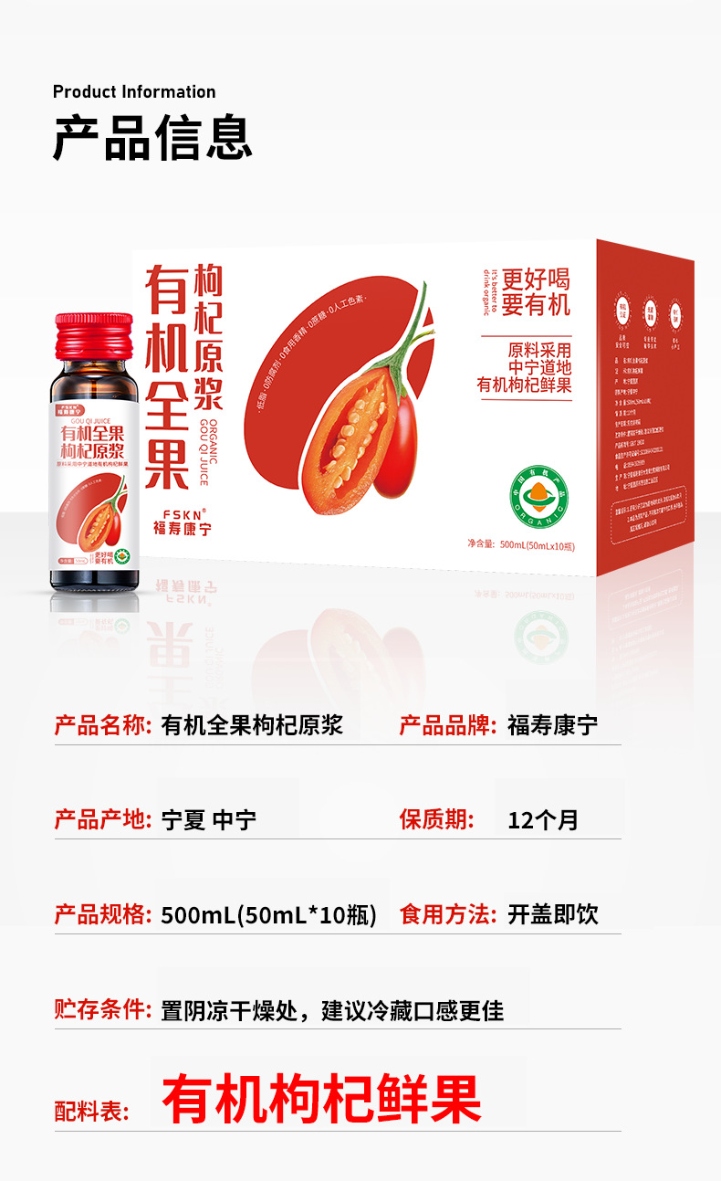 NFC非濃縮生果実搾り枸杞ピューレ50ml*10本/箱 即納可能 原産地メーカーから直送