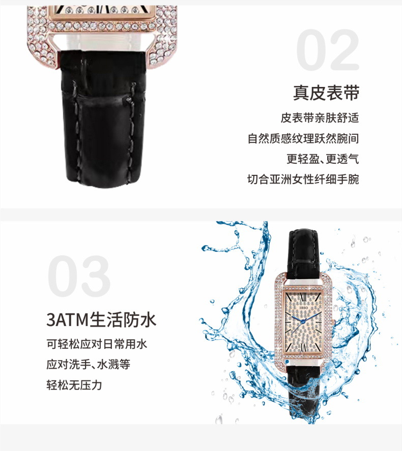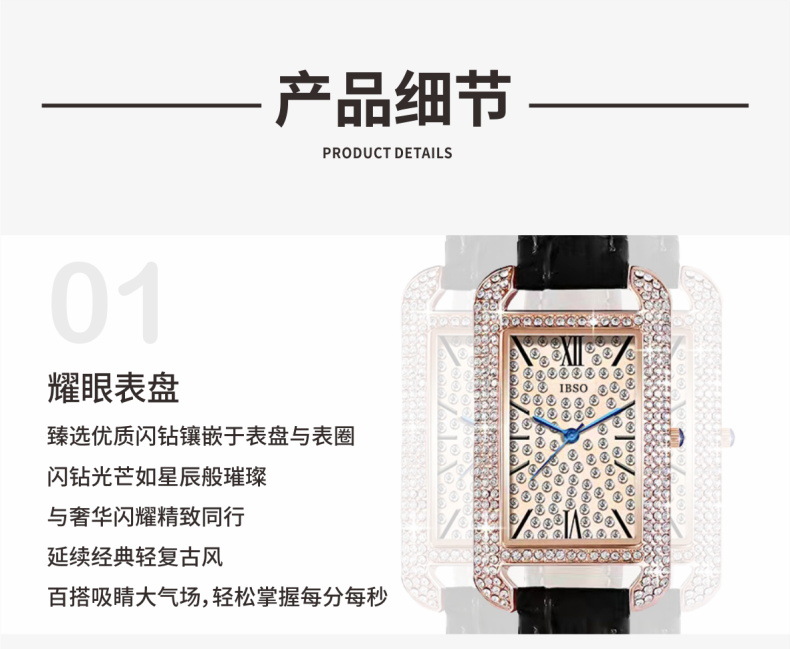 正方形の腕時計の女性の本革のフルドリルの防水の大きい札の精巧な個性の軽い豪華な女性の時計の石英の時計の輸入の専門店のブランド