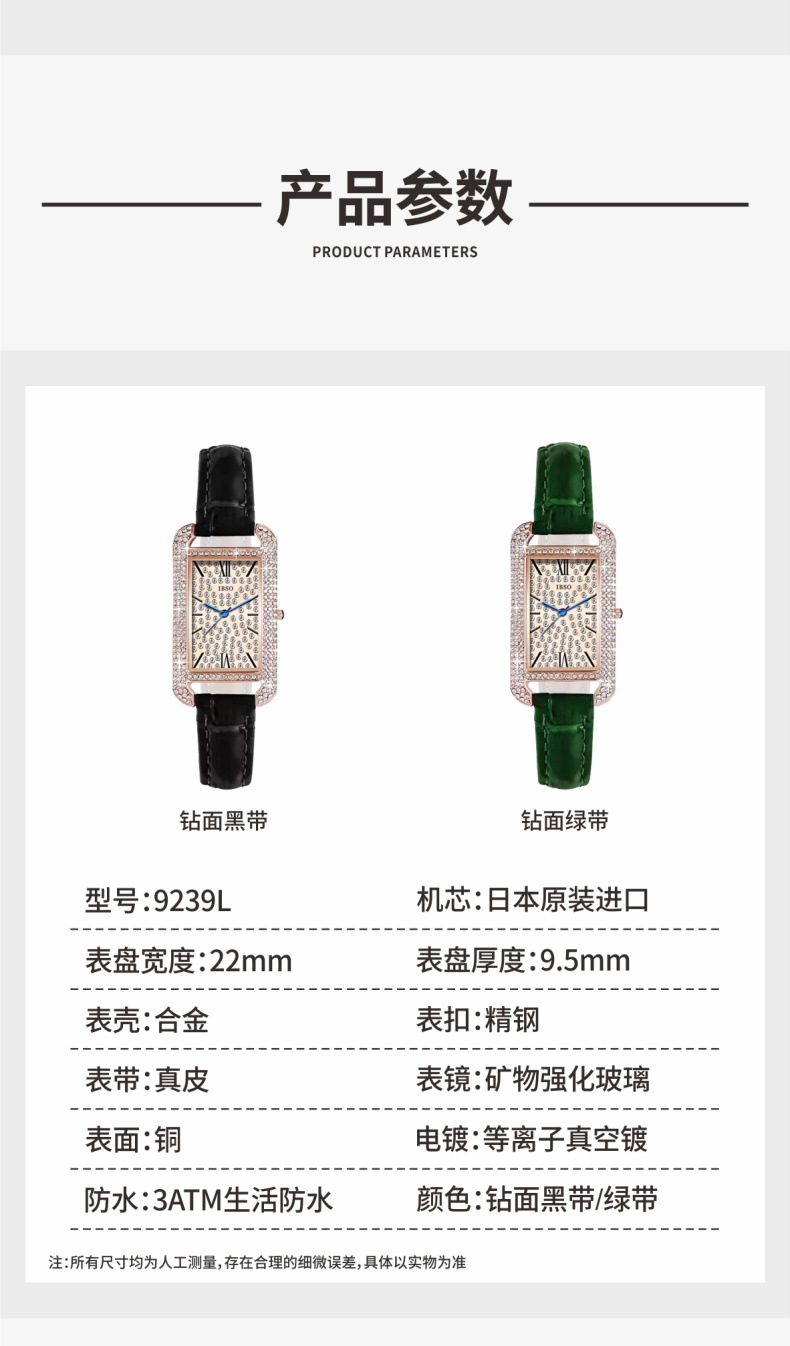 専門店の正規品の小さい四角形の腕時計の女性のタイプの真牛のベルトの防水ネットの赤い生放送の人気の爆発の爆発の金の2024新型の時計