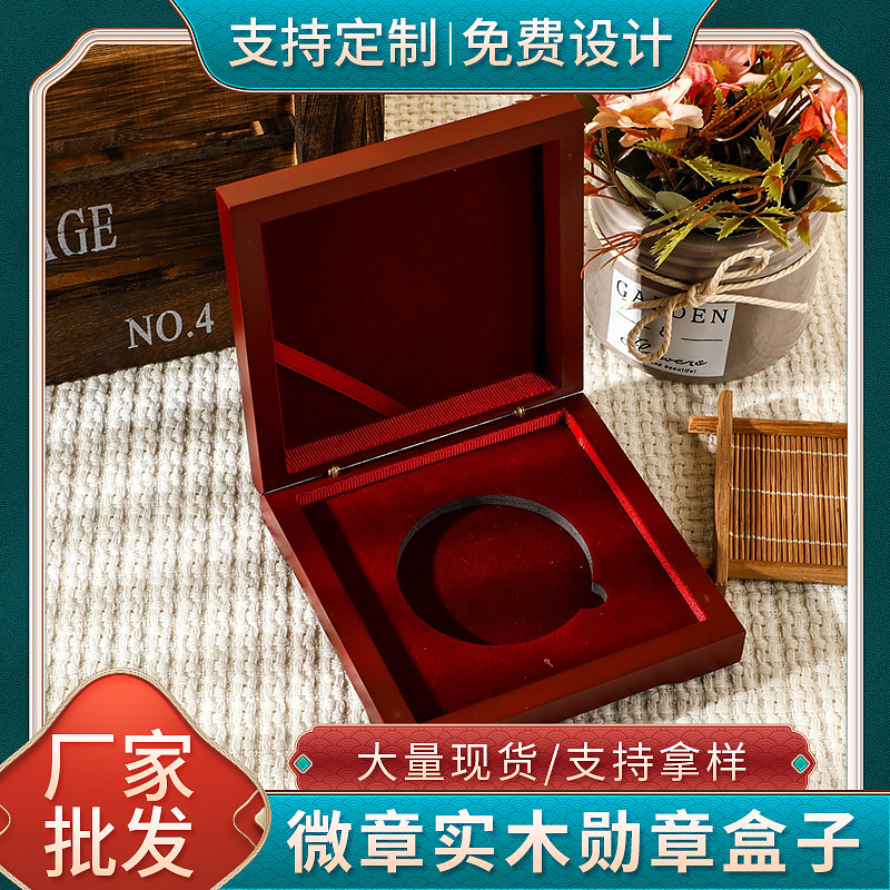 勋章奖章盒收纳雕刻纪念币包装盒徽章胸针实木制质包装展示盒定制