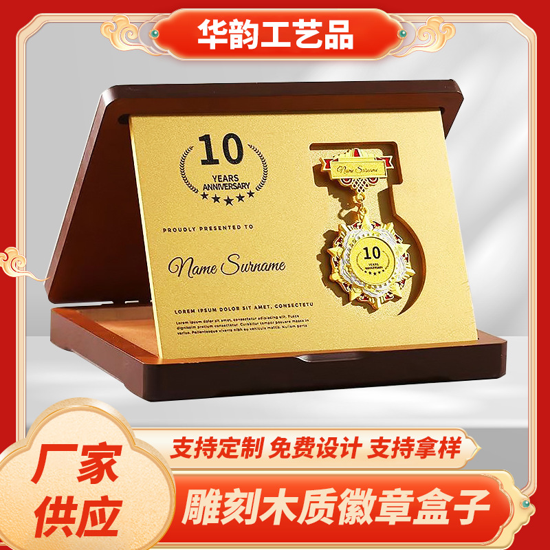 厂家定做勋章徽章纪念币展示盒子奖牌员工纪念章牌匾包装木盒定制