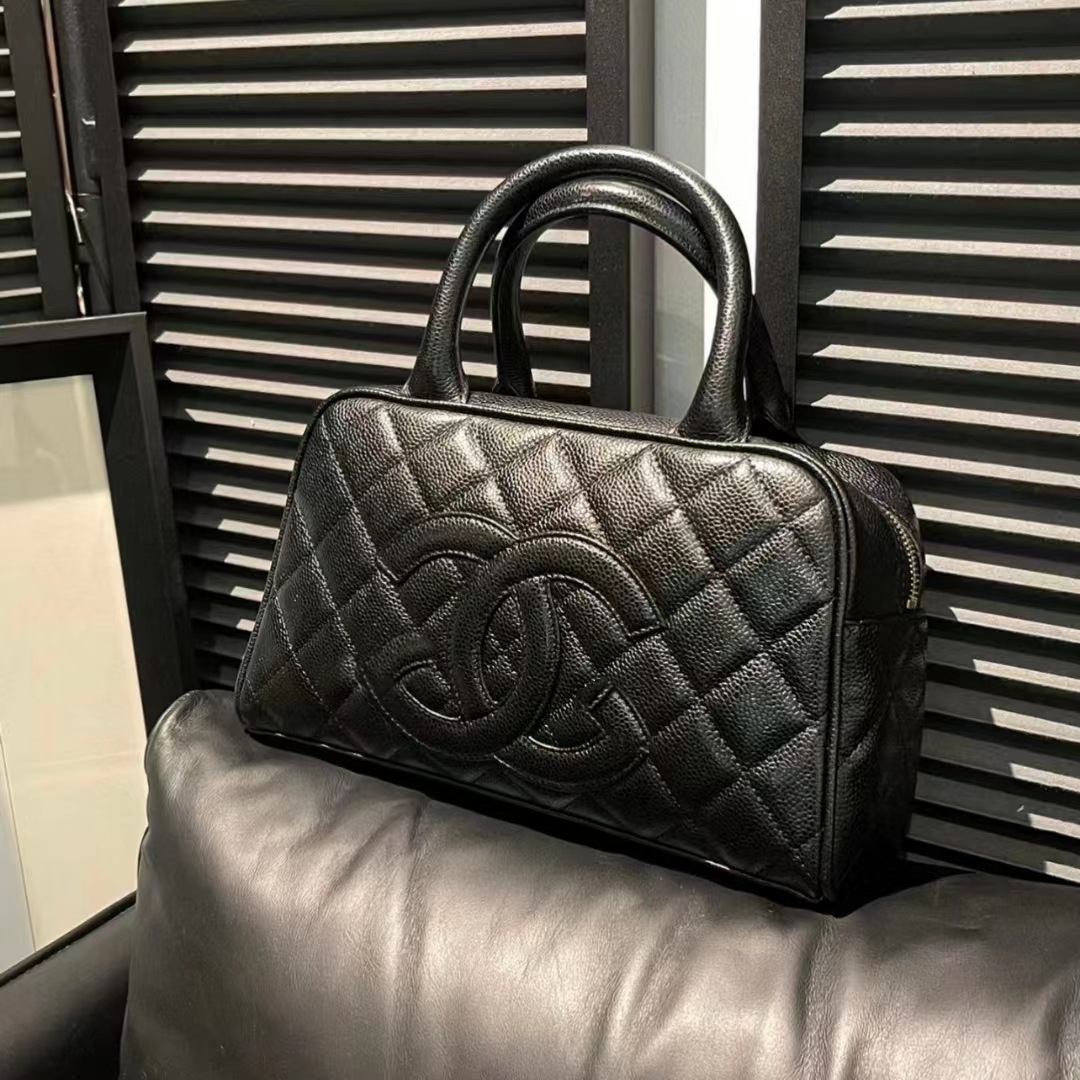 中古ヴィンテージ菱格キャビアボウリングクラシックヒルトンハンディ枕バッグ円筒女性カバン