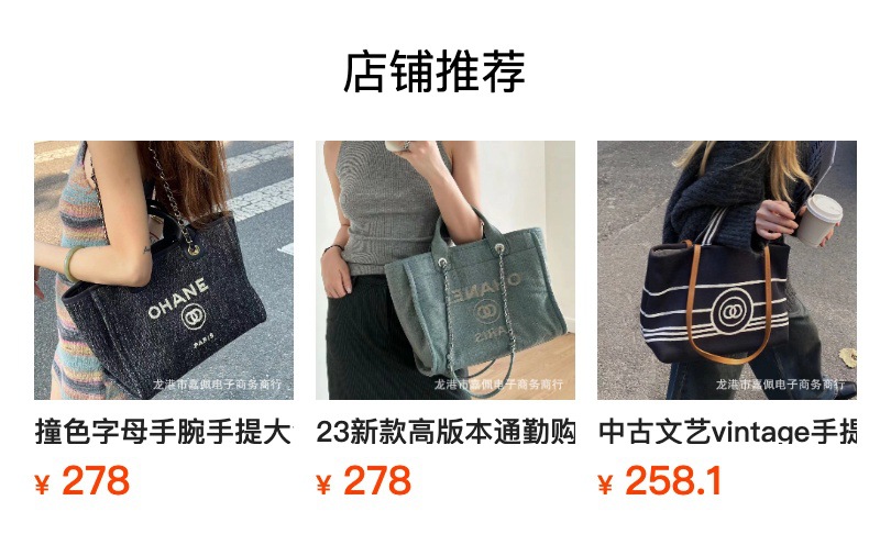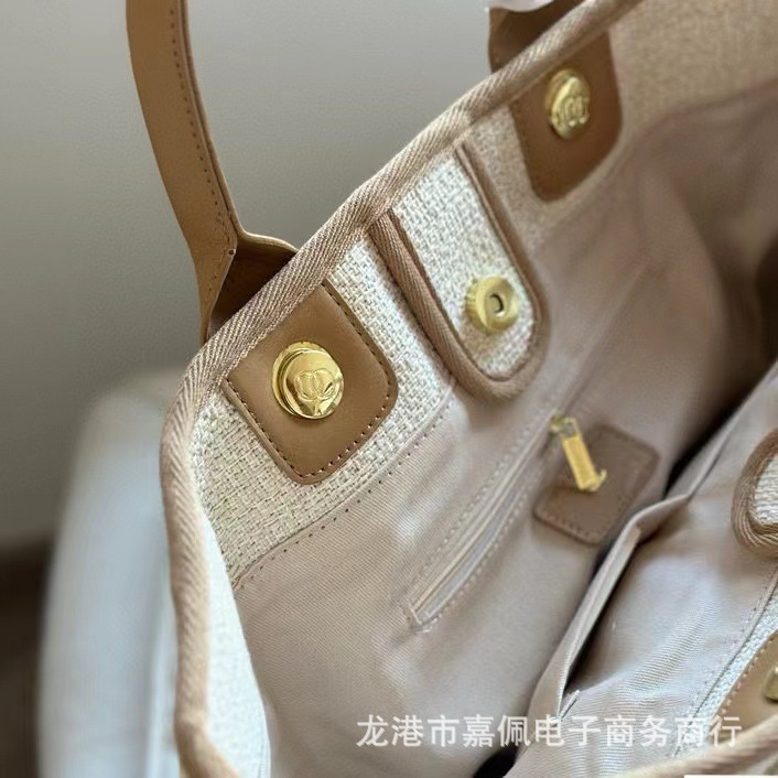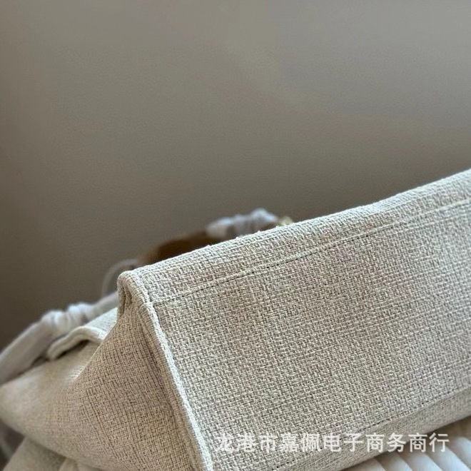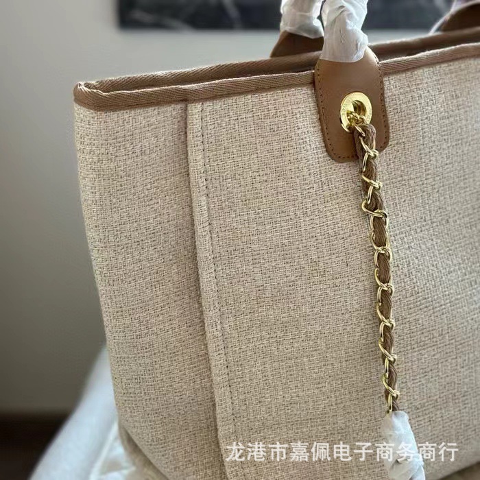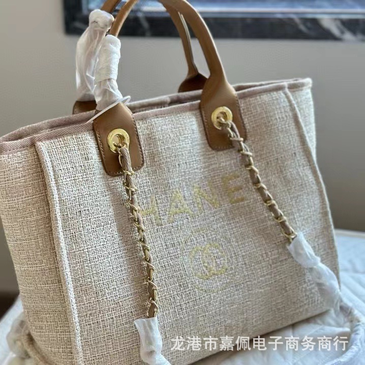 外贸高质感经典小香风沙滩包刺绣帆布大容量手提单肩斜挎链条女包