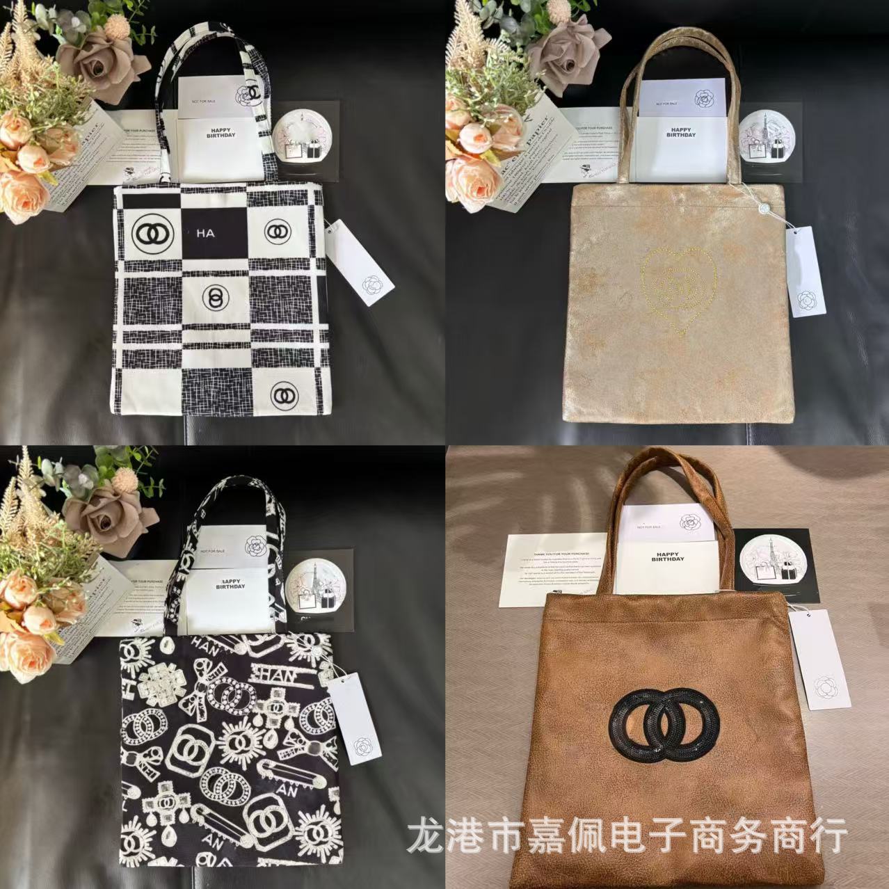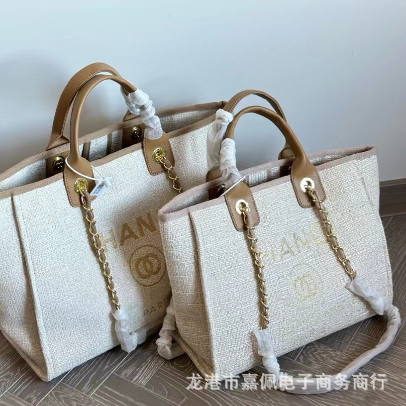 跨境高版本高级黑色24c手提帆布沙滩包链条大容量子母包女包