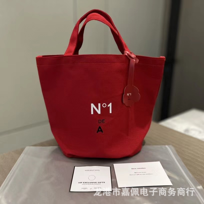 越境美容専門店VIPギフト 赤椿花キャンバスショッピングバッグ バケットバッグ ボーテキャンバスバケットバッグ