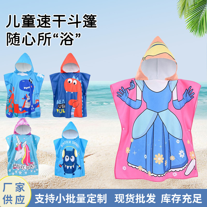 儿童浴巾斗篷式超细纤维沐浴卡通图案吸水速干游泳便携柔软印花