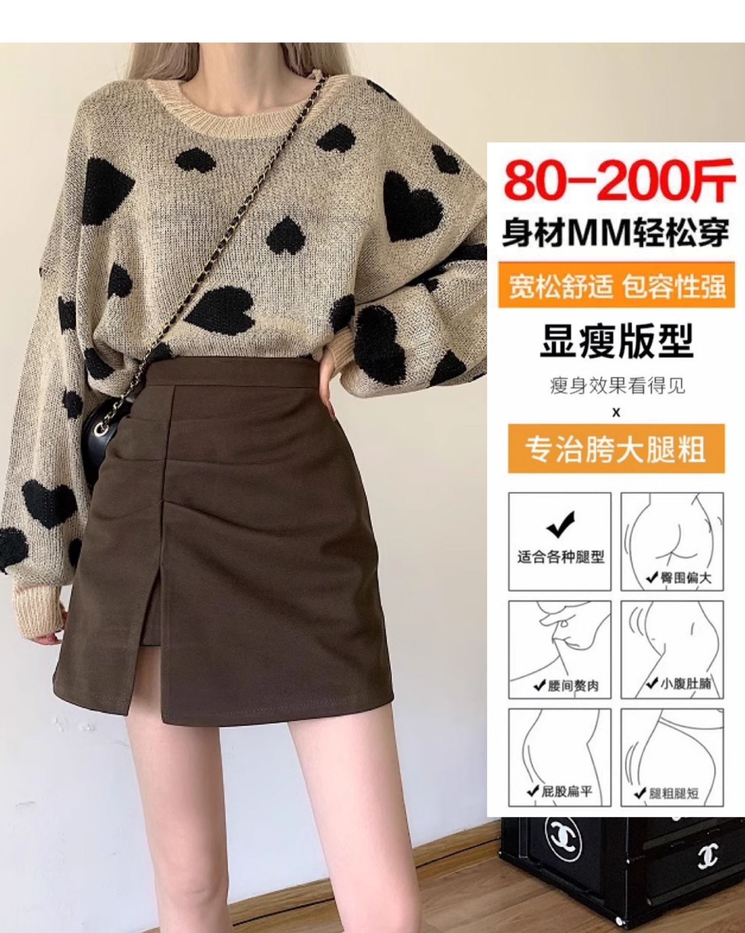 大码胖mm咖色麂皮绒半身裙女秋冬季微胖短裙子高腰棕色a字包臀裙