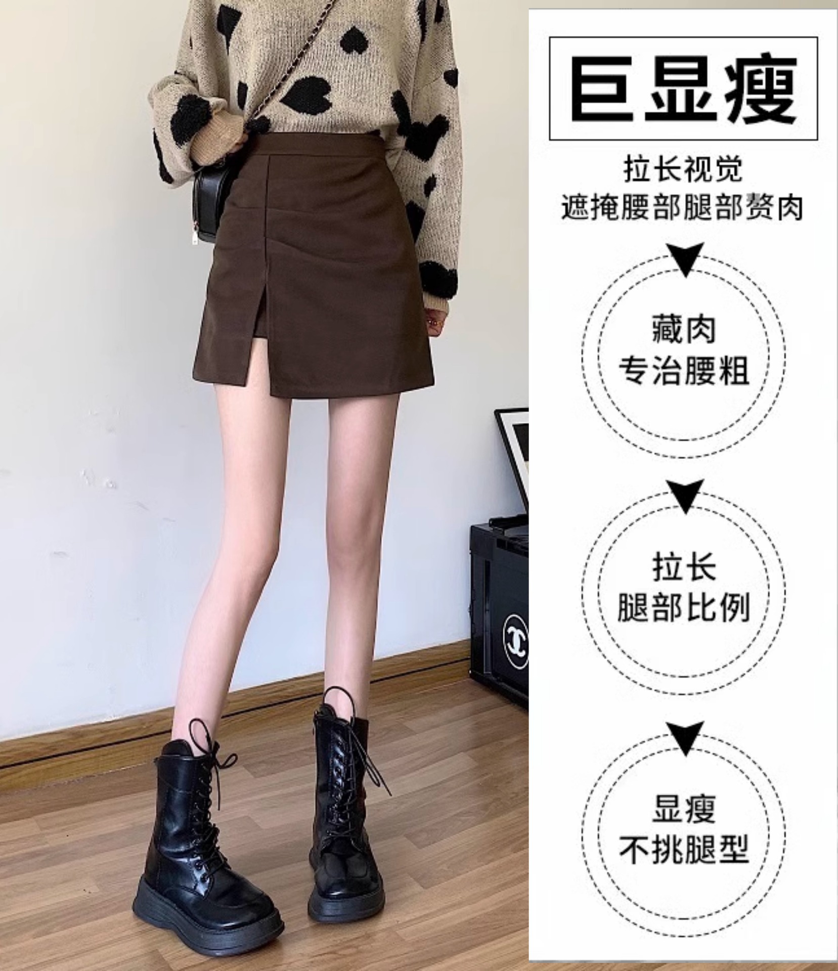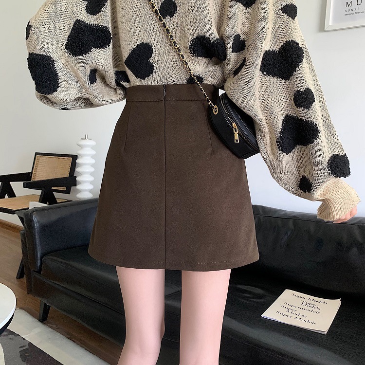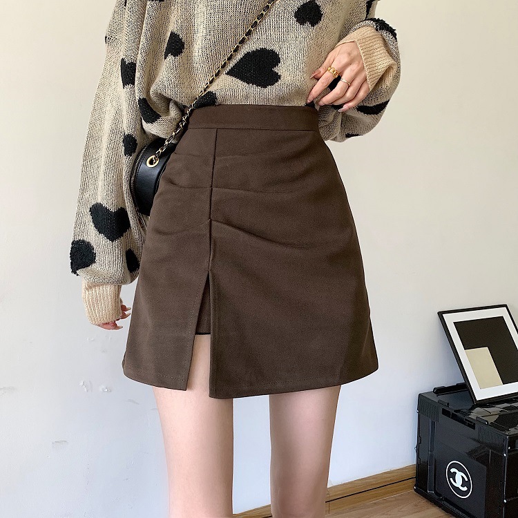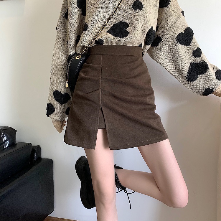 美拉德咖色麂皮半身裙女秋冬新款大码梨型显瘦小个子A字包臀短裙