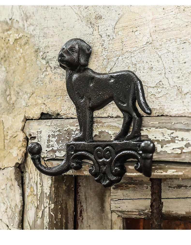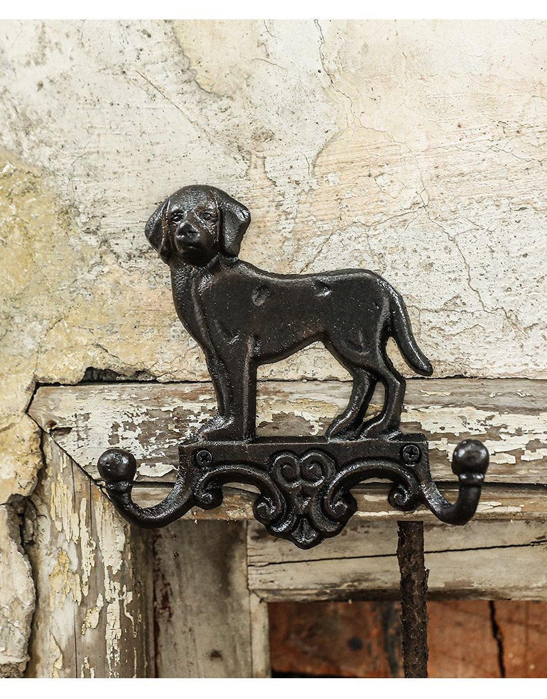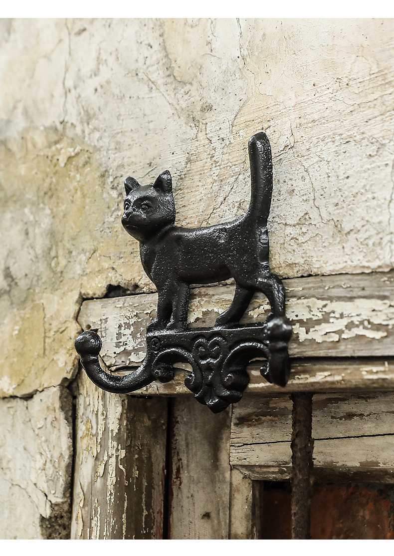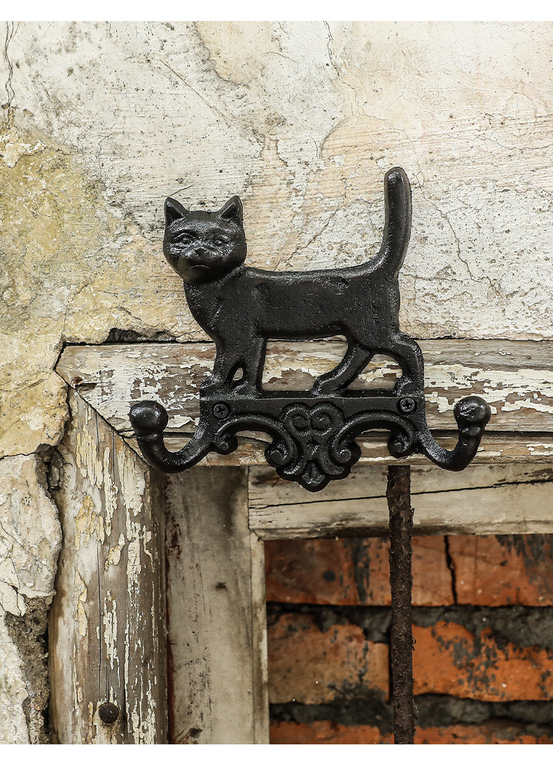 動物猫犬鋳鉄フック壁フック壁掛けレトロガーデン庭飾りフック鉄製工芸品クロスボーダー