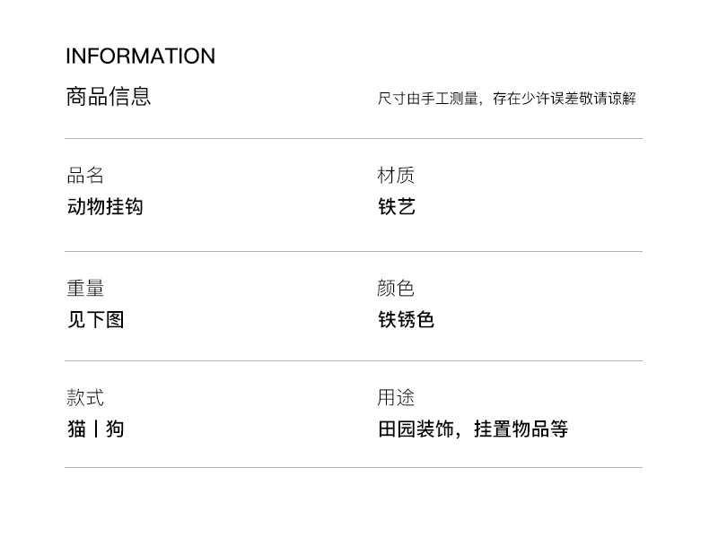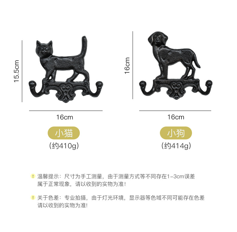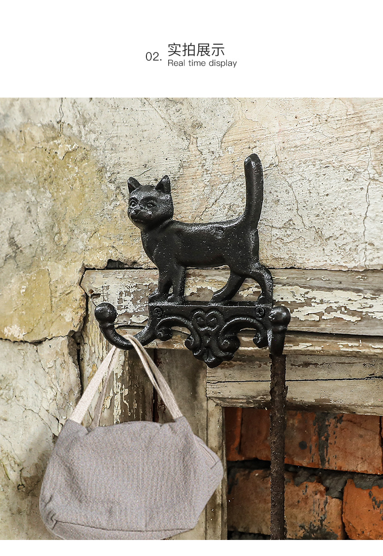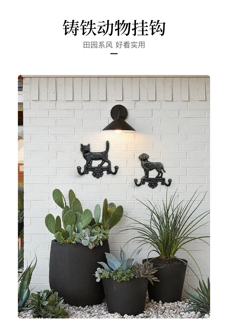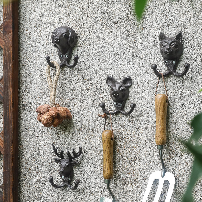 動物猫犬鋳鉄フック壁フック壁掛けレトロガーデン庭飾りフック鉄製工芸品クロスボーダー