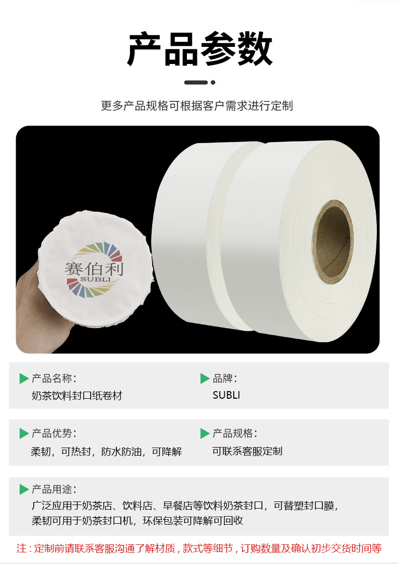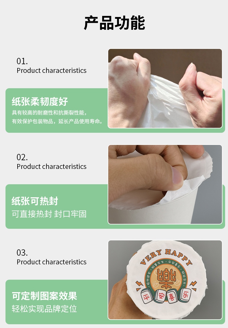 ヒートシール可能なプラスチッククラフト紙は、各種飲料の手圧シール機のティーカップシール紙膜コイル材100gを適用することができる