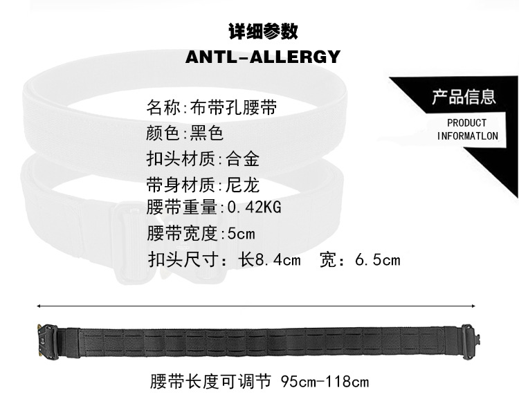 アウトドアトレーニングベルトナイロン生地穴付きベルトコブラバックルモレ戦术パトロール戦术ベルト