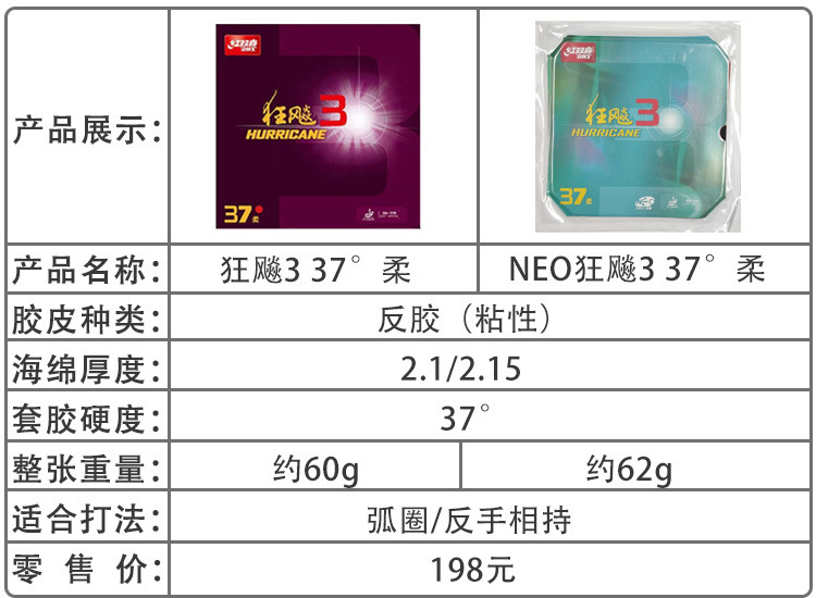 紅双喜37度柔反ゴムneo狂暴3国狂三狂暴8省狂37 ° 反手卓球セットゴム皮
