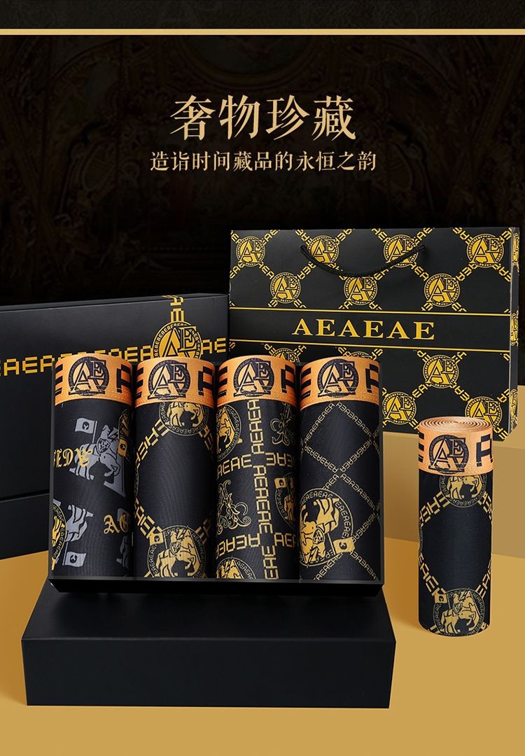 5本入りの夏の男性下着高級黒金氷糸中腰の薄い通気性の快適な平角ズボンの四角いズボン