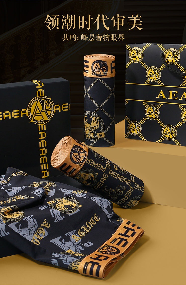 男性下着、通気性と快適、アメリカンスタイルのパーソナライズされたボクサーブリーフ、プリントトレンディなエスニックレトロミッドウエストボクサーパンツ
