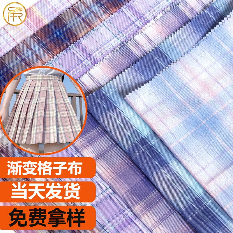 夏のグラデーション格子布平織り生地ポリエステル女装JKスカート布ワンピース格子生地卸売り