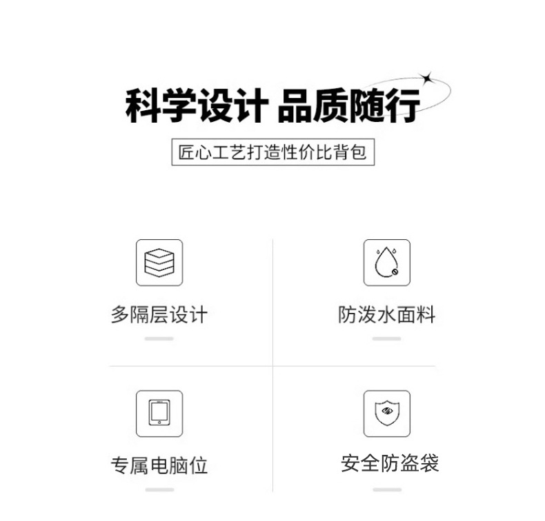大容量防泼水双肩多功能笔记本电脑扩容背包休闲出差包印字LOGO