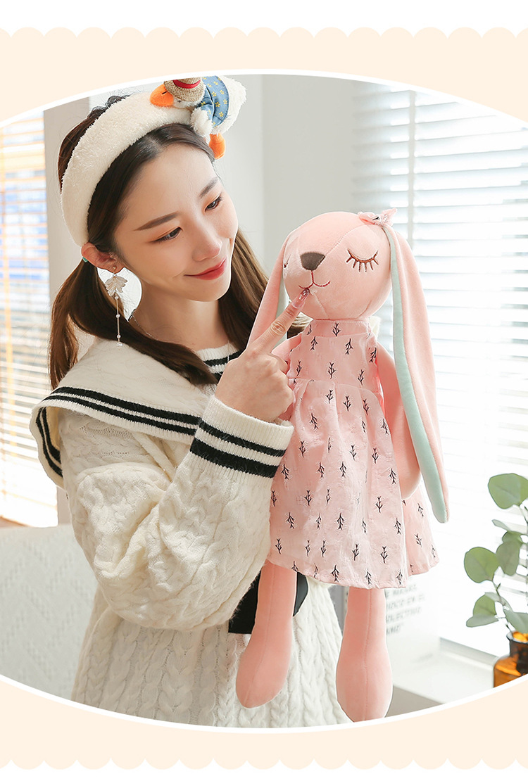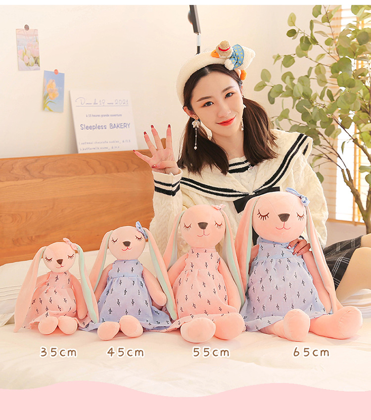 国境を越えた子供の新しい安安兎公仔はスカートを着てカップルのウサギのぬいぐるみを着て、長い耳のウサギの人形をなだめる