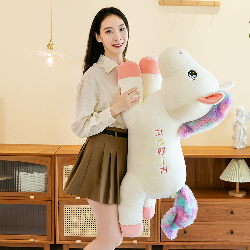新型ユニコーン公仔可愛いポニーぬいぐるみ寝抱き枕大ぬいぐるみ女子誕生日プレゼント
