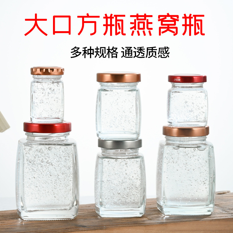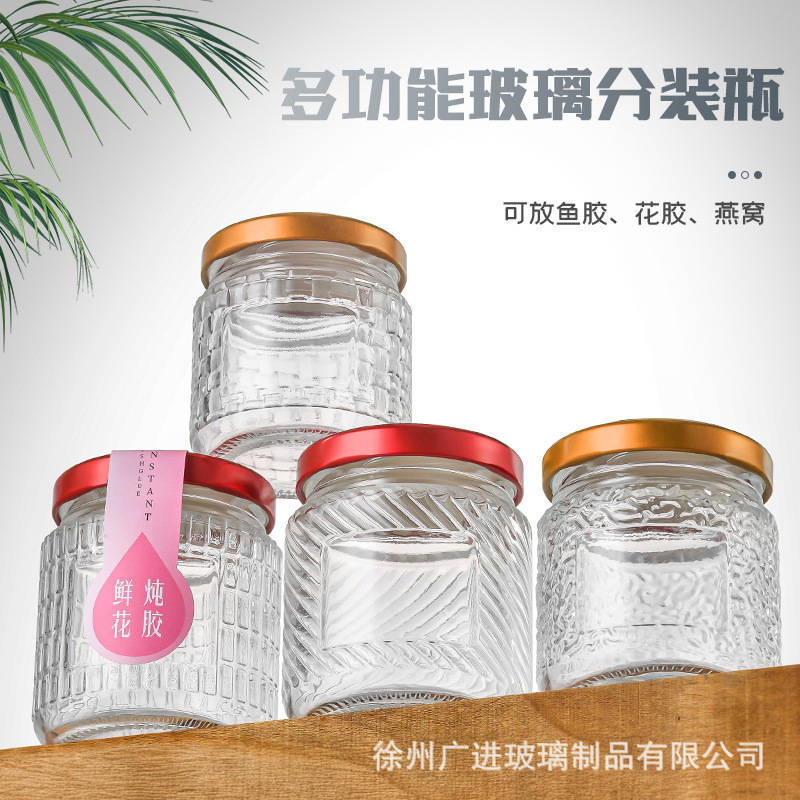 玻璃密封罐分装瓶透明燕窝鲜炖酱菜可蒸煮包装带盖厂家批发调料瓶