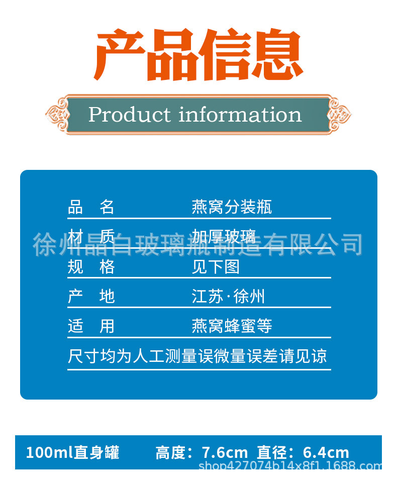 燕窩分注瓶高温家庭用蒸煮分注ガラス瓶密封小缶新鮮煮込み瓶メーカー