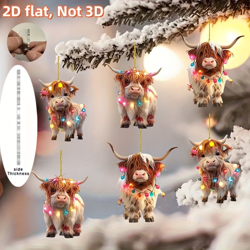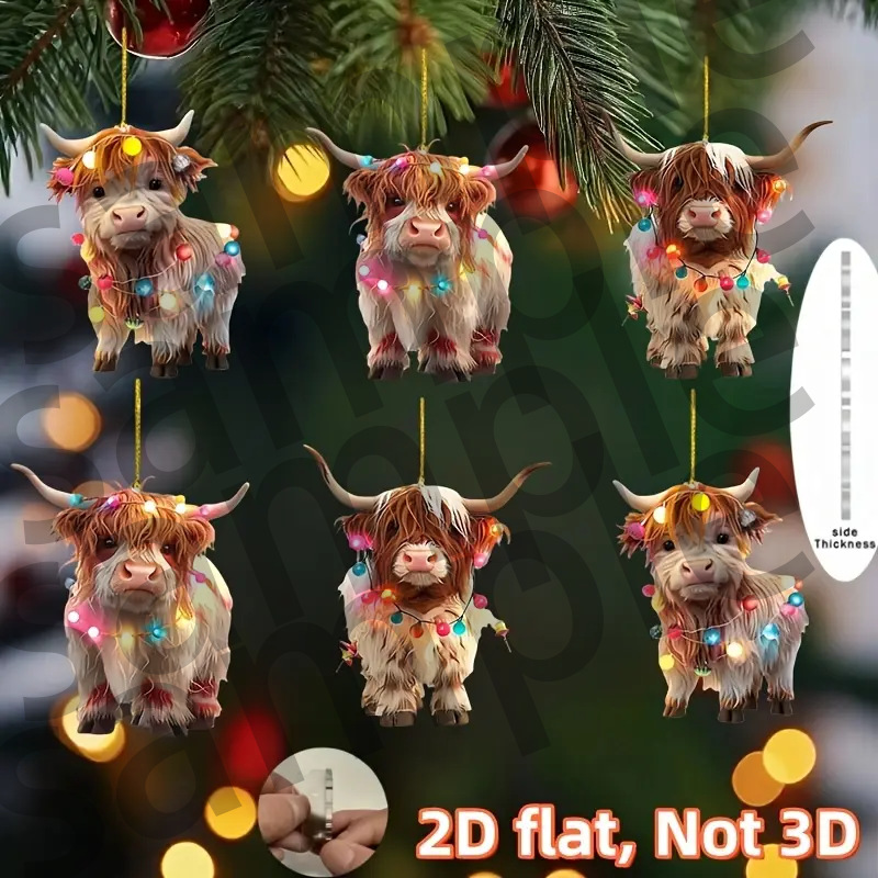 クロスボーダー新型クリスマスハイランド牛創意ペンダントクリスマスツリーヤク高原牛アクリル装飾品