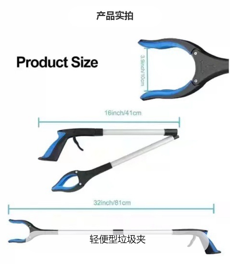 メーカー直供折り畳みアルミ合金ピックアップクリップ厚いアルミ合金折りたたみゴミクリップピックアップ衛生クランプ