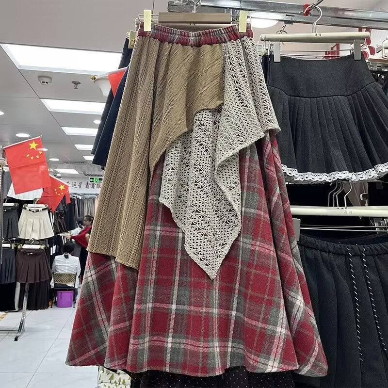 【現物】デザイン感が色にぶつかって格子の半身のスカートの女性2025春のモデルの瑞麗は腰のa字のスカートを緩めます。