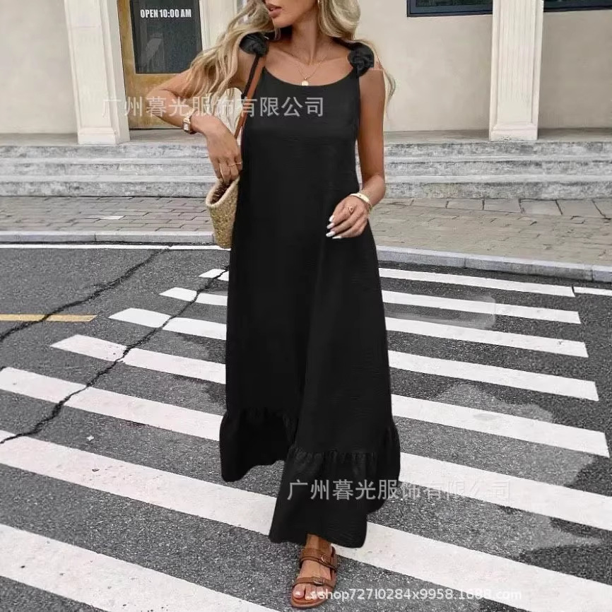 2026跨境欧美新款亚马逊夏款宽松舒适百搭纯色荷叶边下摆无袖连衣
