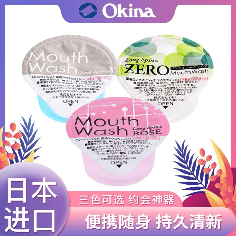 日本から輸入されたOKINAうがい水携帯用使い捨ての新鮮な口臭を除いて口の中を清潔にします。アルコールがありません。
