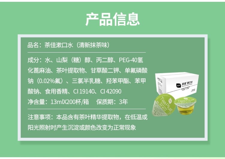 Teapus茶佳ゼリーカップうがい水携帯使い捨て海底すくい同一型ゼロアルコール温和抹茶味