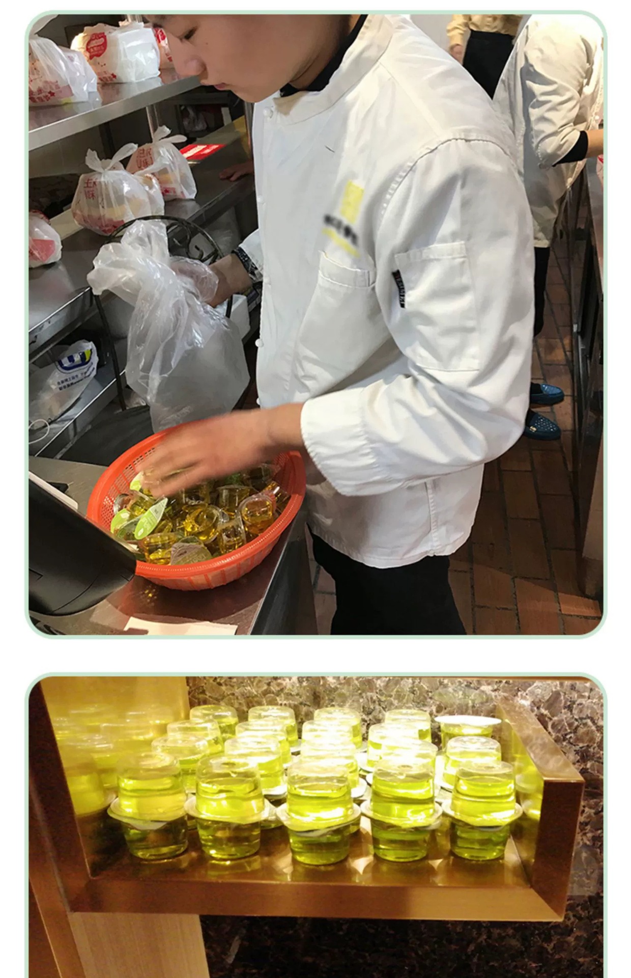お茶がいいです。うがい水の海底で同じタイプのうがい水のゼリーカップをすくい取ります。