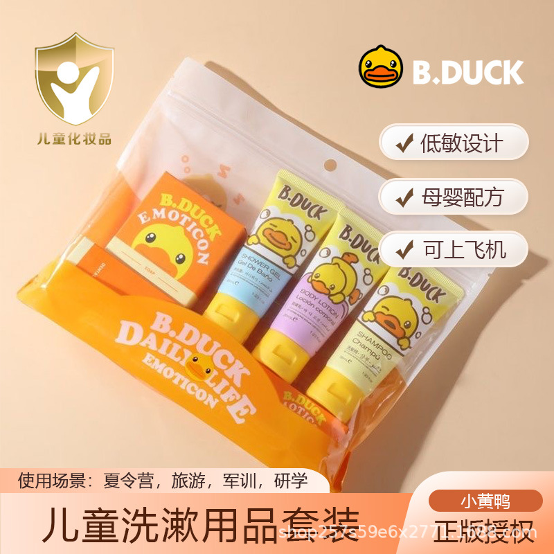 本物の B.duck リトルイエローアヒル 子供用トイレタリーセット 子供用シャワージェル シャンプー ボディローション 歯ブラシ お土産