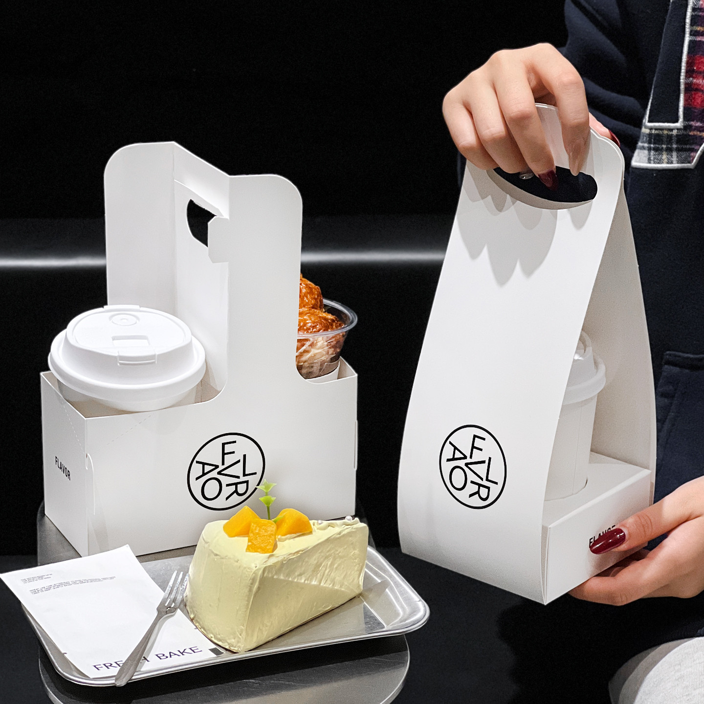 网红咖啡手提盒白卡纸奶茶杯托烘焙店创意包装盒外带打包商用