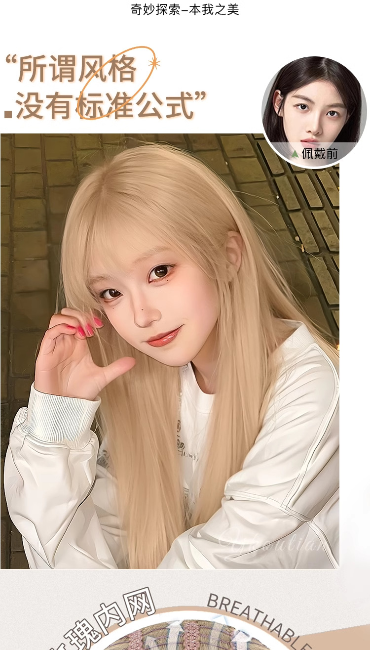 許昌若蘭のかつらの女性の小額のレースの金の中で長さを分けて学校の韓系の日常の自然な白い金色のかつらをまっすぐに出します。