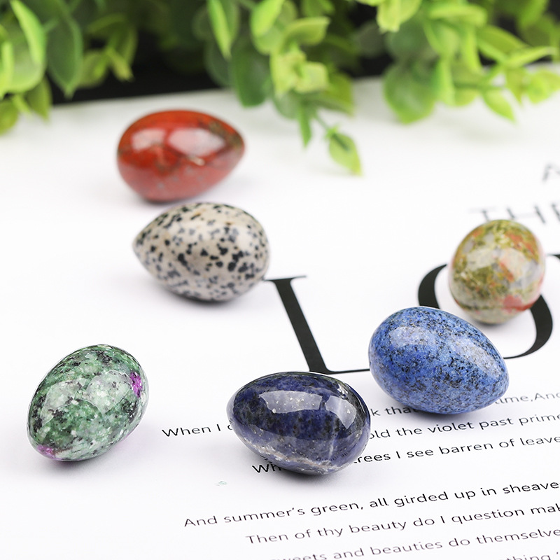 天然水晶小卵3x2粉白紫虎眼石東陵玉材質卵原石置物ハンドル