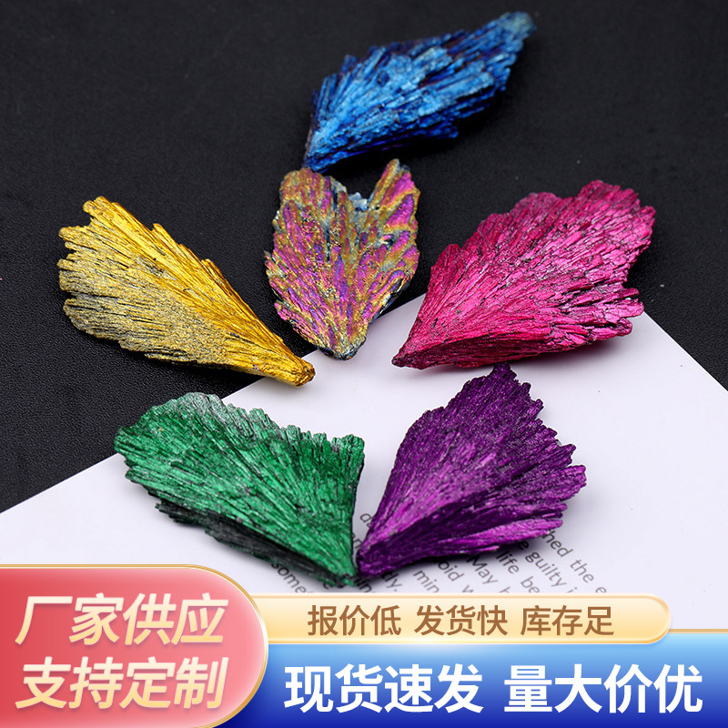 天然色碧璽孔雀羽毛原石彩鉱石装飾奇石置物鉱標
