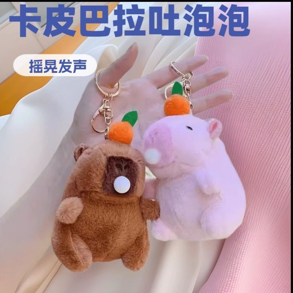 泡を吹き、揺れ、音を出して、奇妙な音を出すカピバラのペンダント、ぬいぐるみキーホルダーペンダント、かわいい人形ギフト