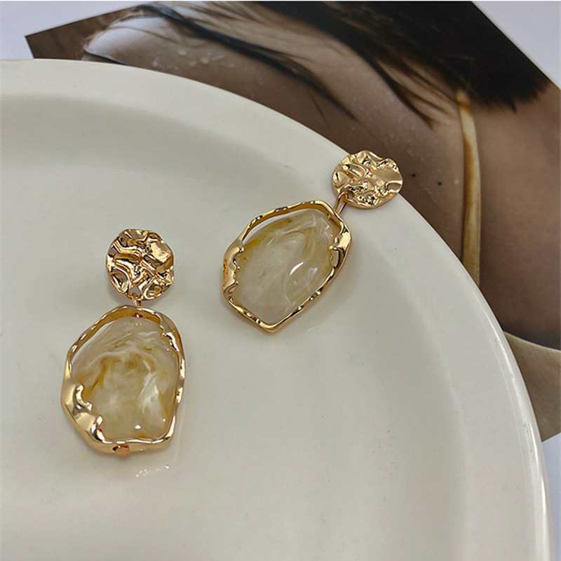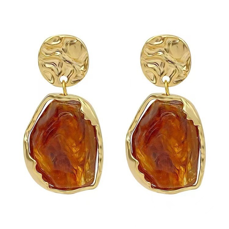 レトロなカレー色の樹脂の不規則な四角形の幾何学のイヤリングの気質はイヤリングのフランス式の簡単な耳飾りの女性に似合います。