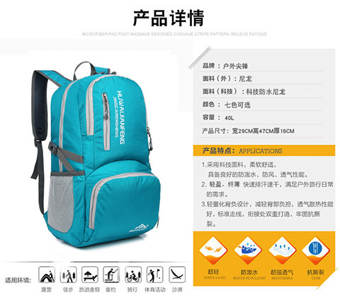 折り畳み可能なリュックサック男性大容量アウトドア登山バッグ丈夫で長持ちするスキンバッグ新型40L旅行バッグ