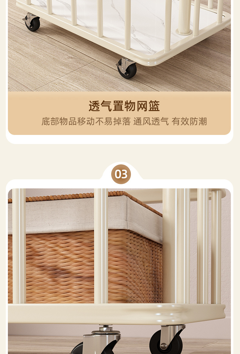 小型の床置きハンガーの家庭用取っ手付きの洗濯かごは寝室のベランダに移動して洗濯物を干します。