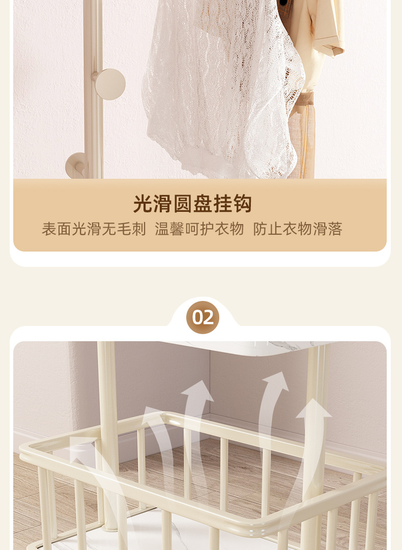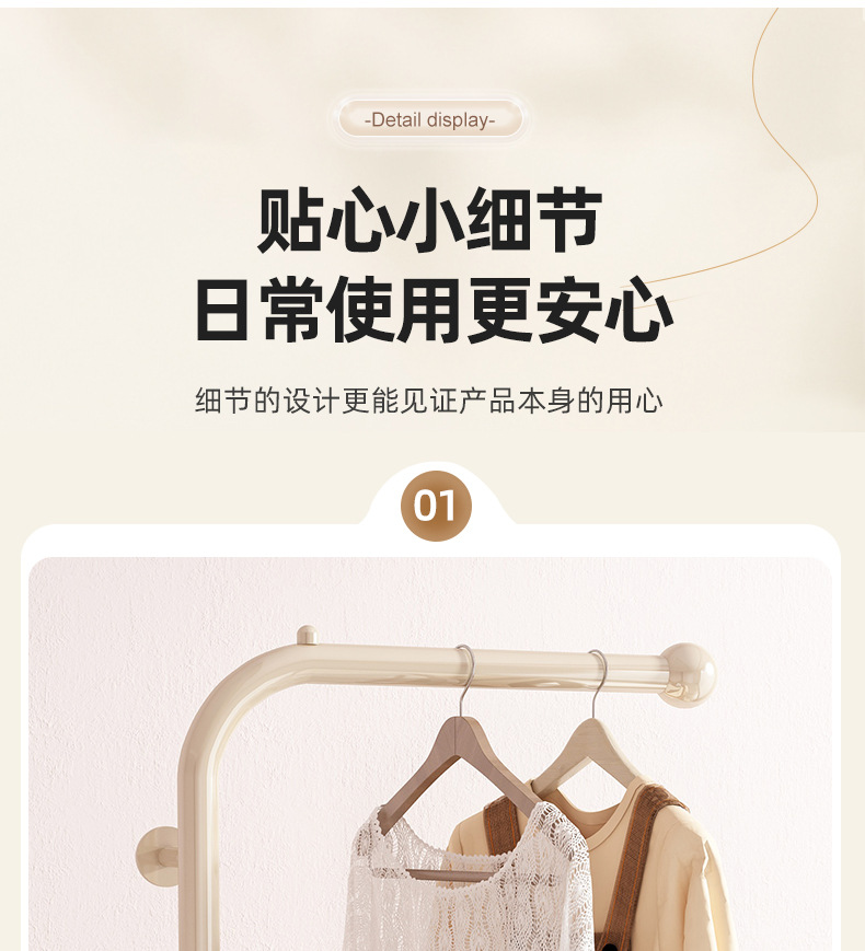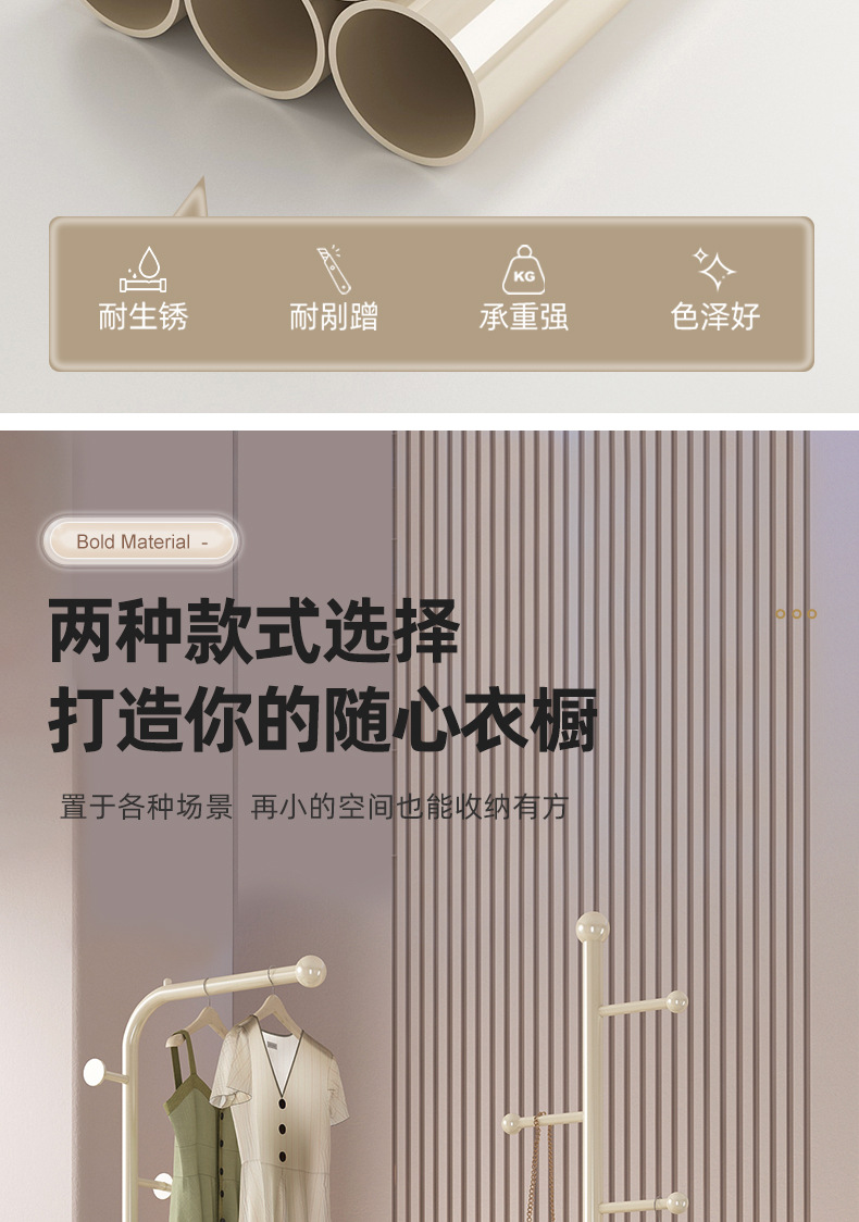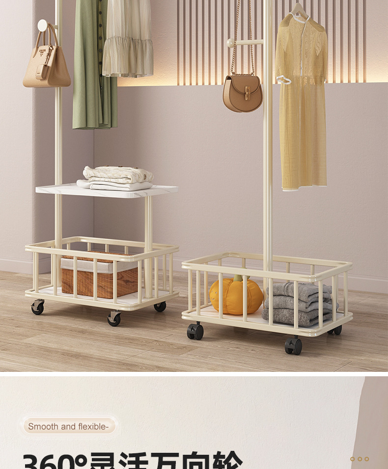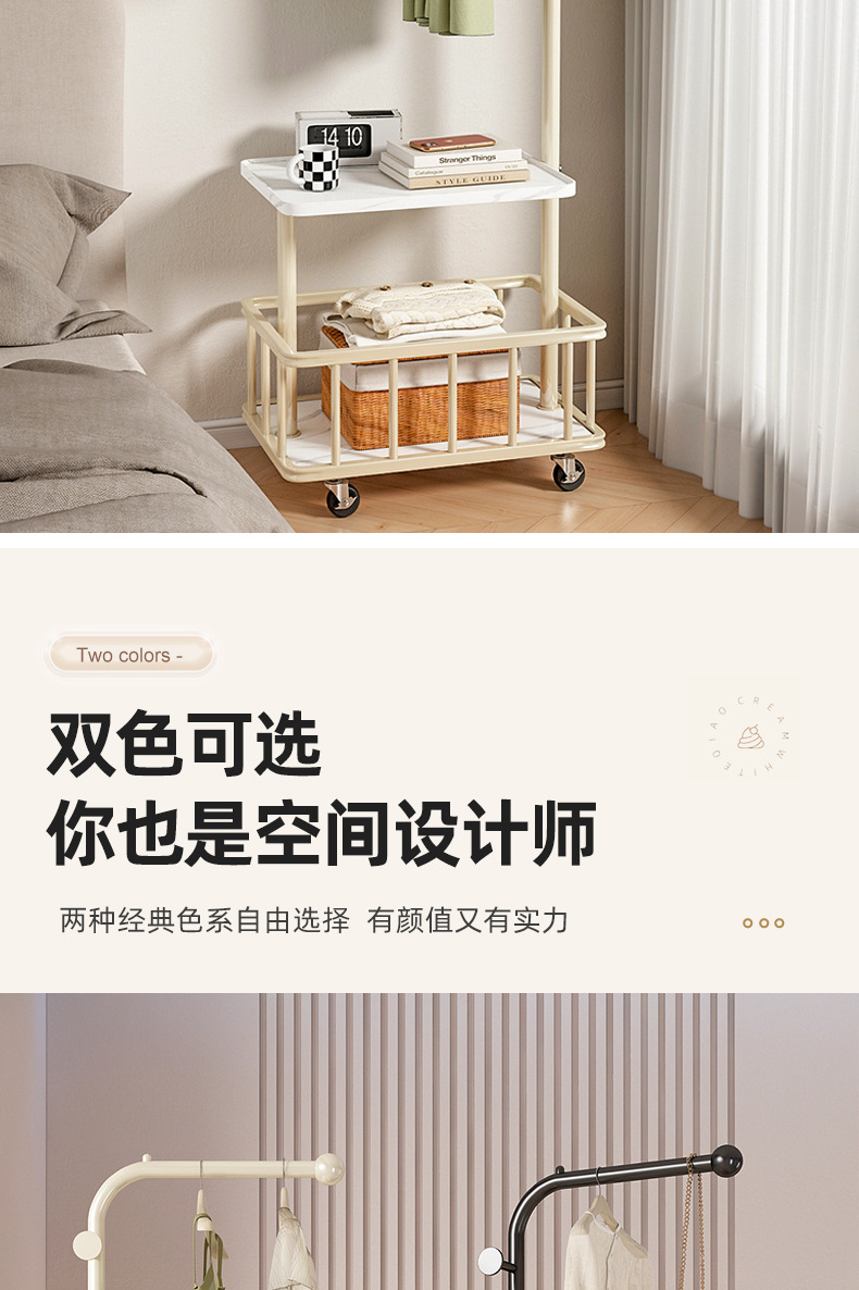衣帽架卧室落地家用可移动床边晚上挂放衣服神器简易双杆挂衣架子