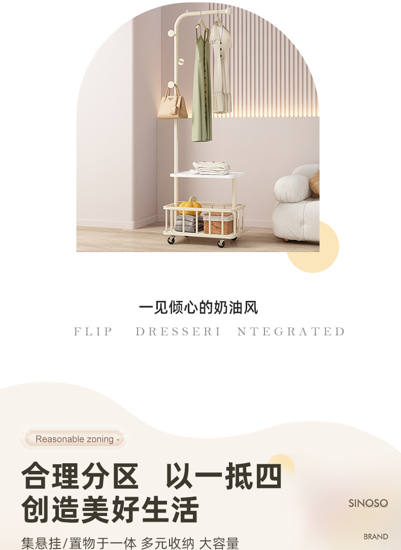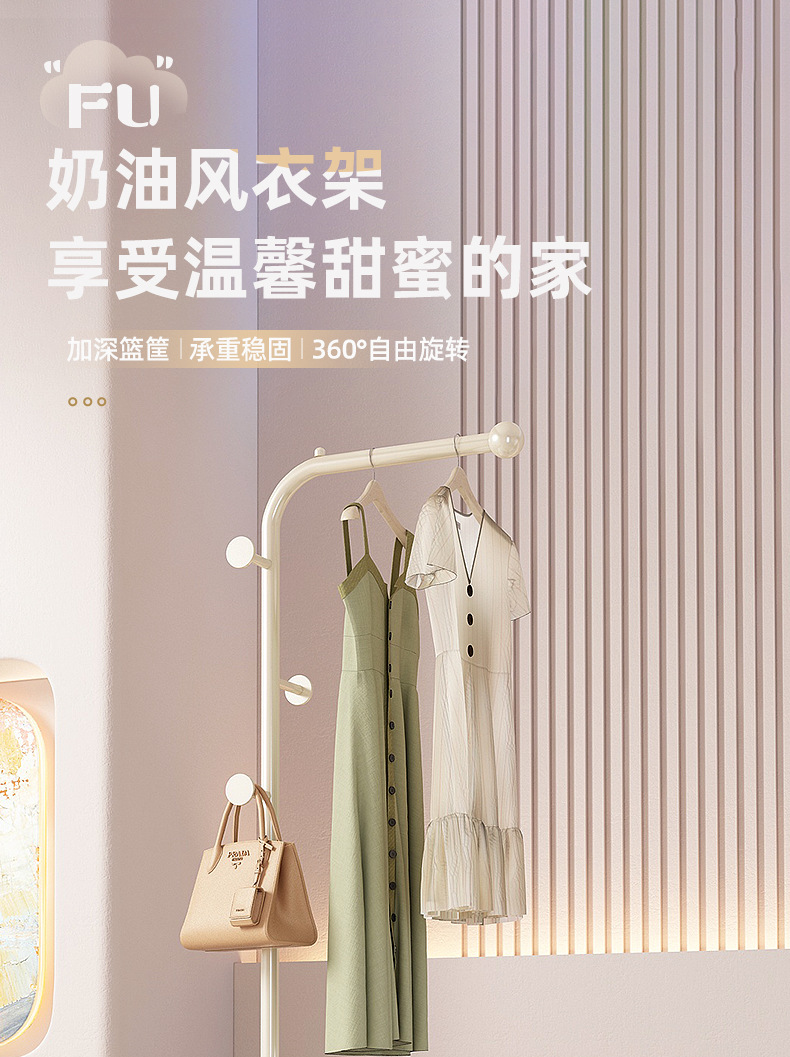 クリーム風の服の帽子の棚は簡単です。寝室は床に落ちてハンガーを掛けます。