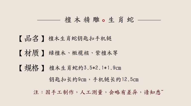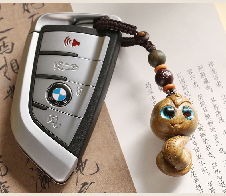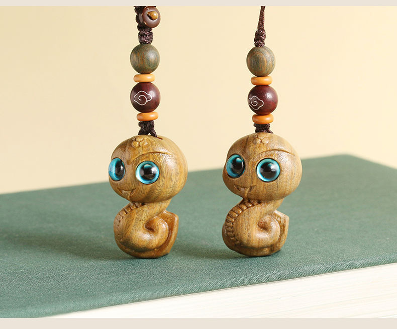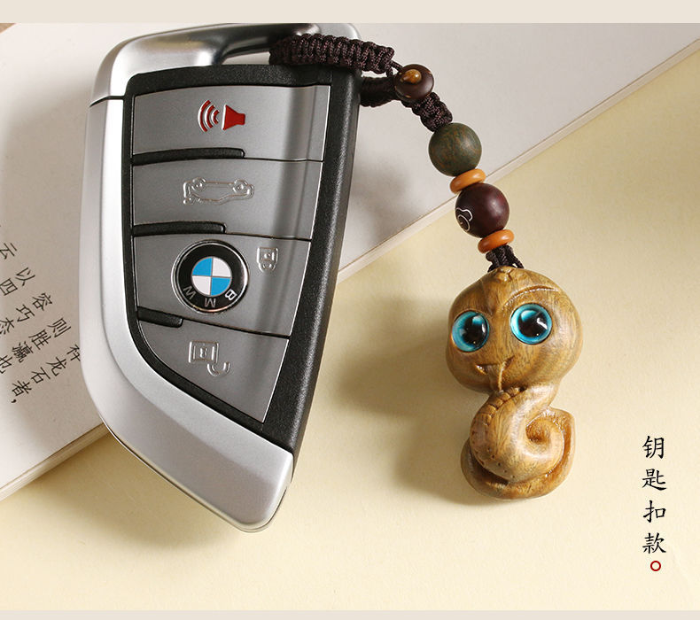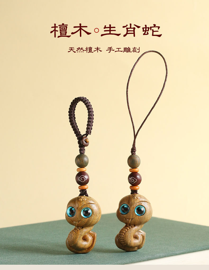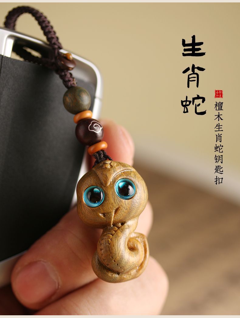 かわいい緑檀木十二生肖蛇自動車キーホルダーペンダント男女創意携帯チェーンペンダントプレゼント