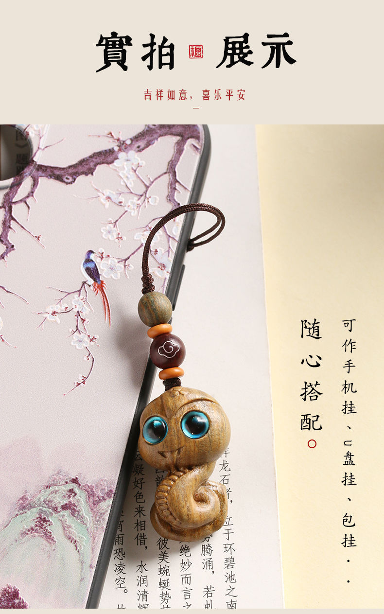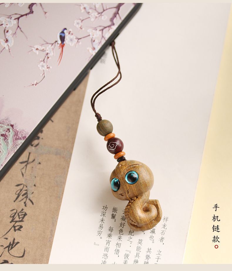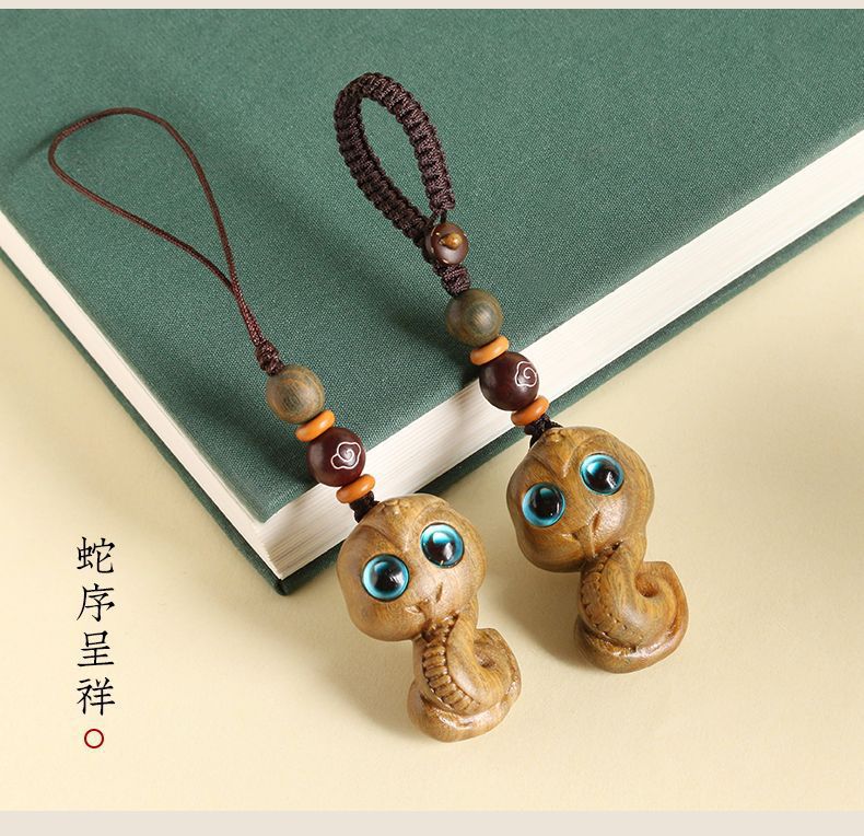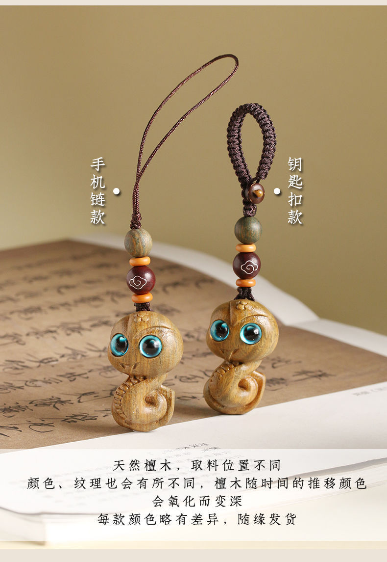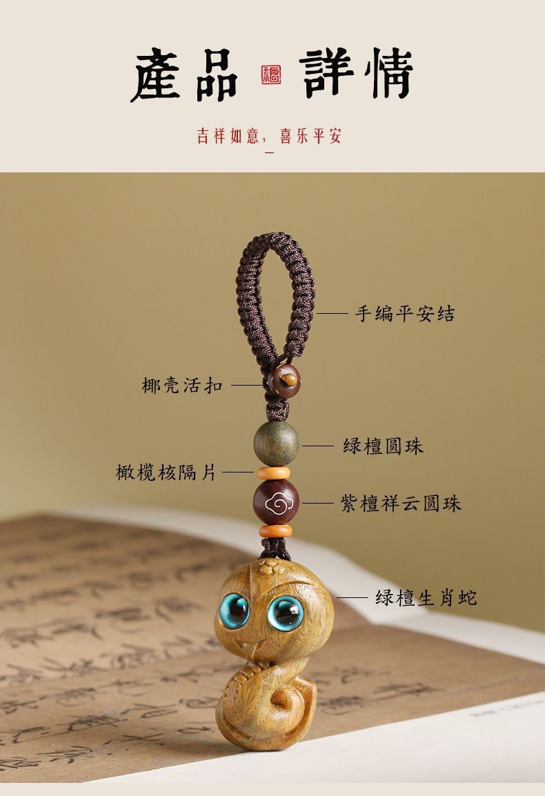 カラー 緑檀木かわいい生肖蛇-キーホルダー,緑檀木かわいい生肖蛇-携帯電話のひもの金